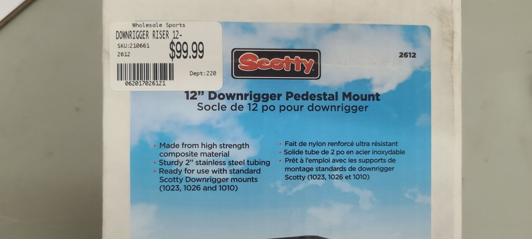 SCOTTY 12" DOWNRIGGER PEDESTAL MOUNT $100