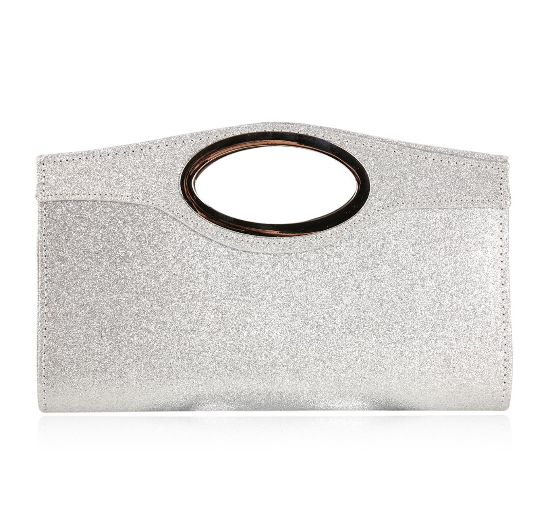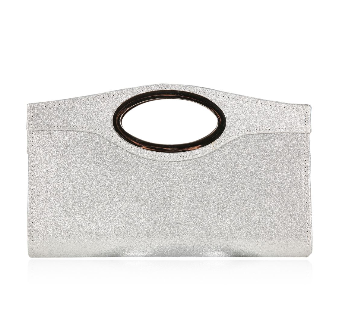 A SCP Evening Bag. Sparkly Silver evening clutch with chain strap.