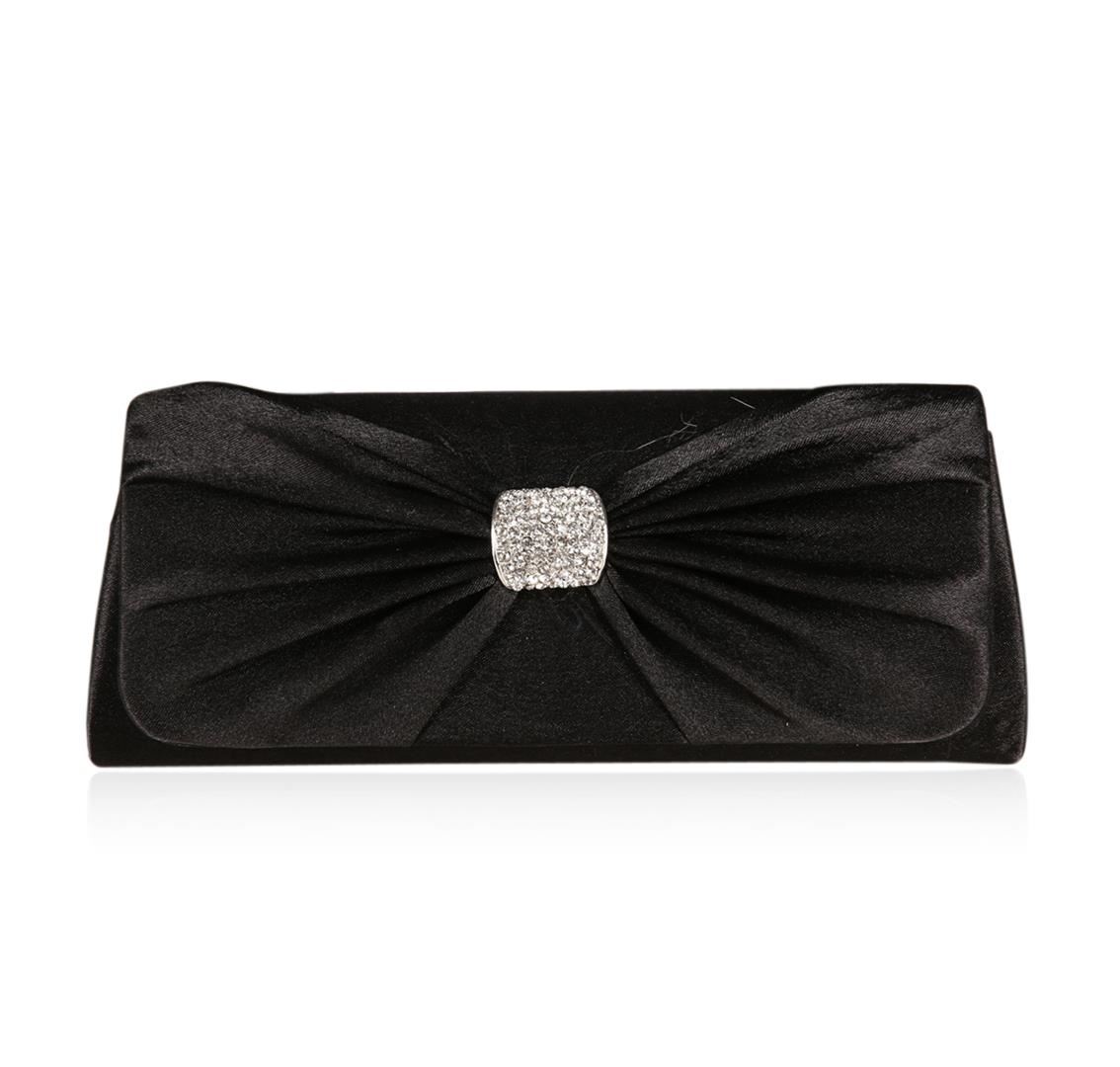 A SCP Evening Bag. Black with silver embellished Bow knot and chain strap.