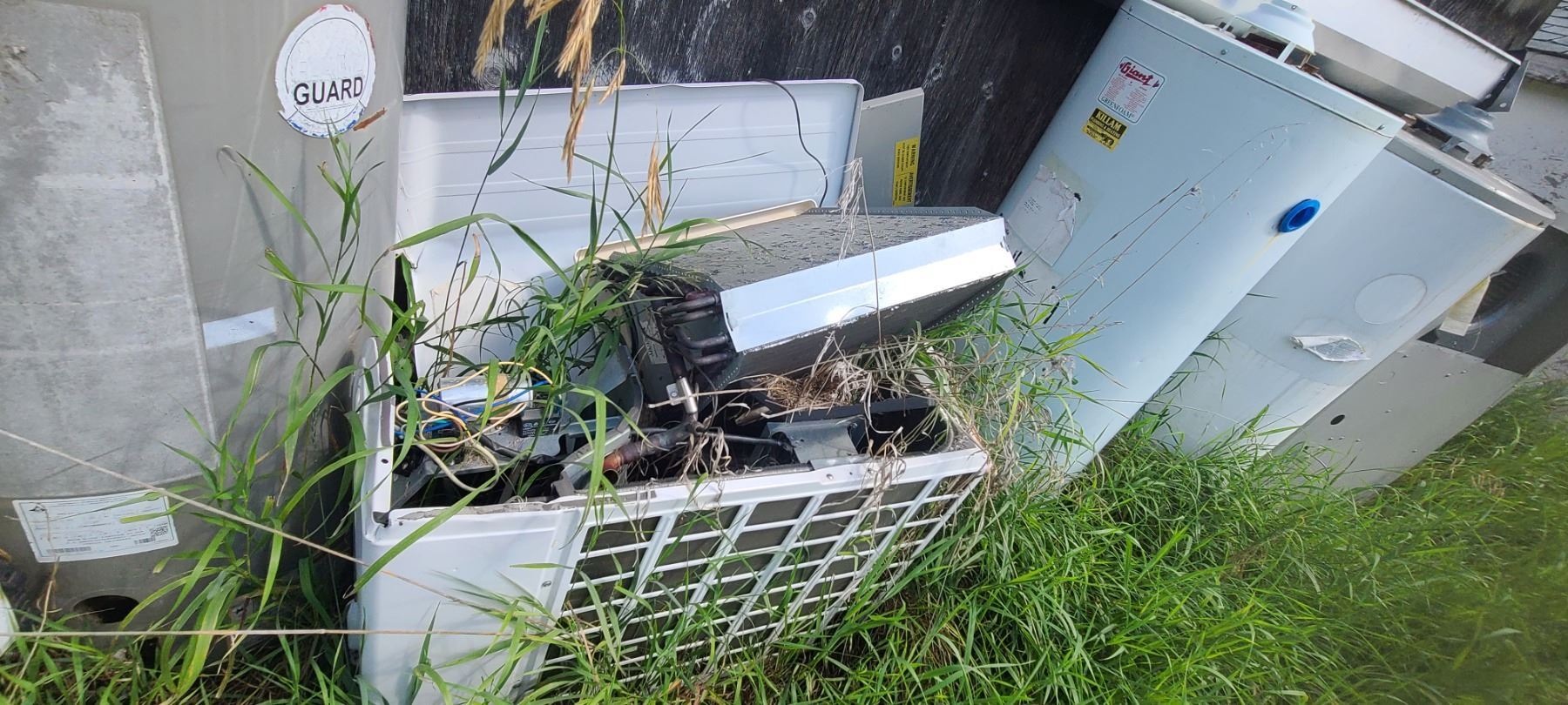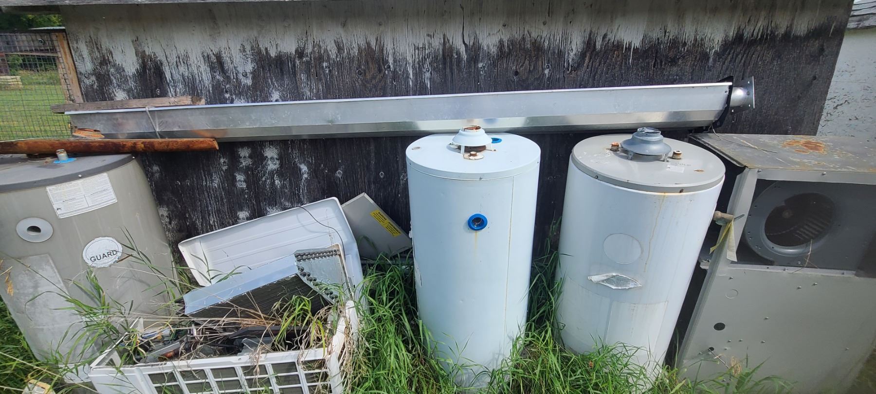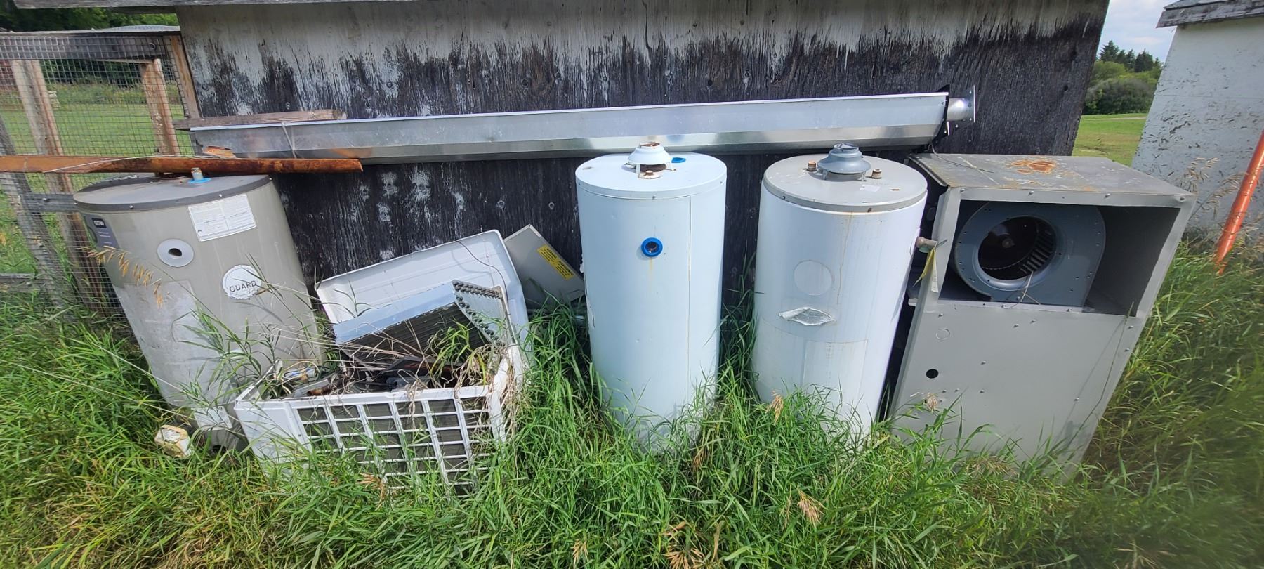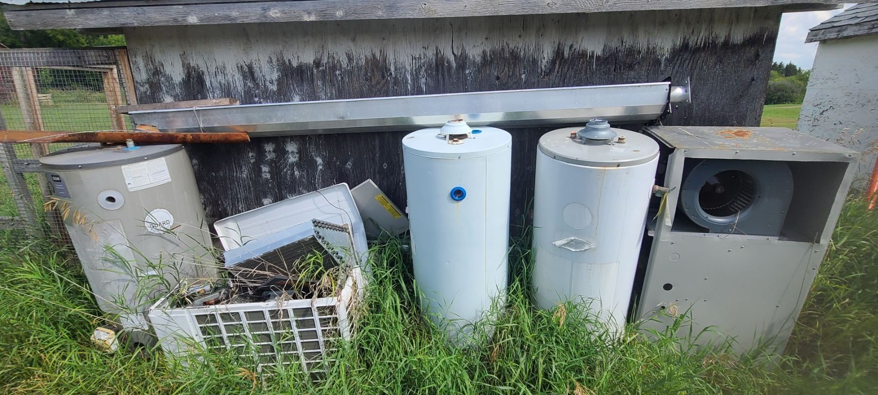 SCRAP METAL PILE BEHIND CHICKEN HOUSE AND BESIDE CORRAL