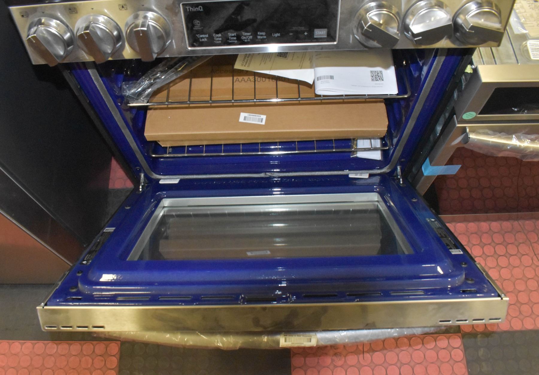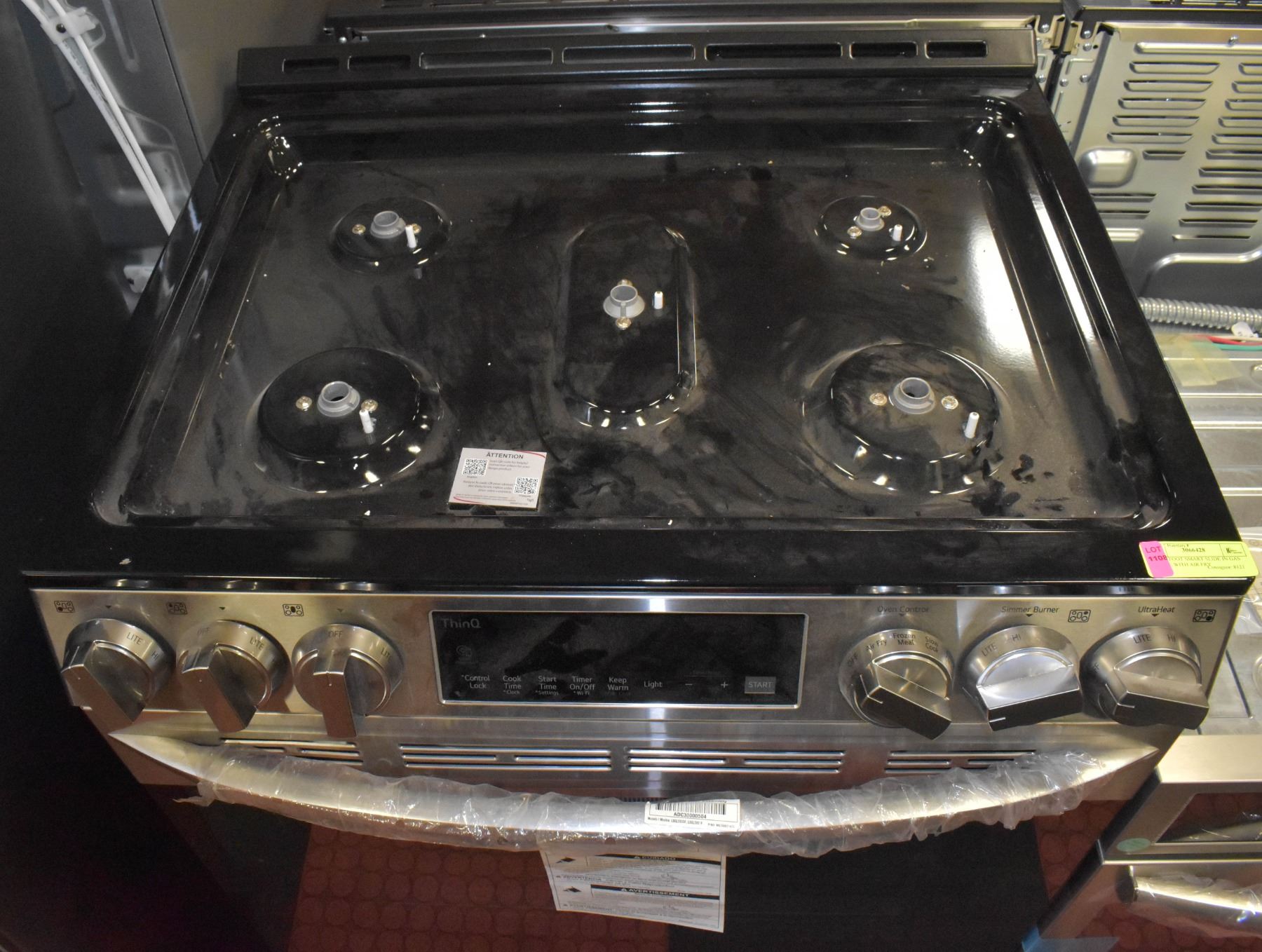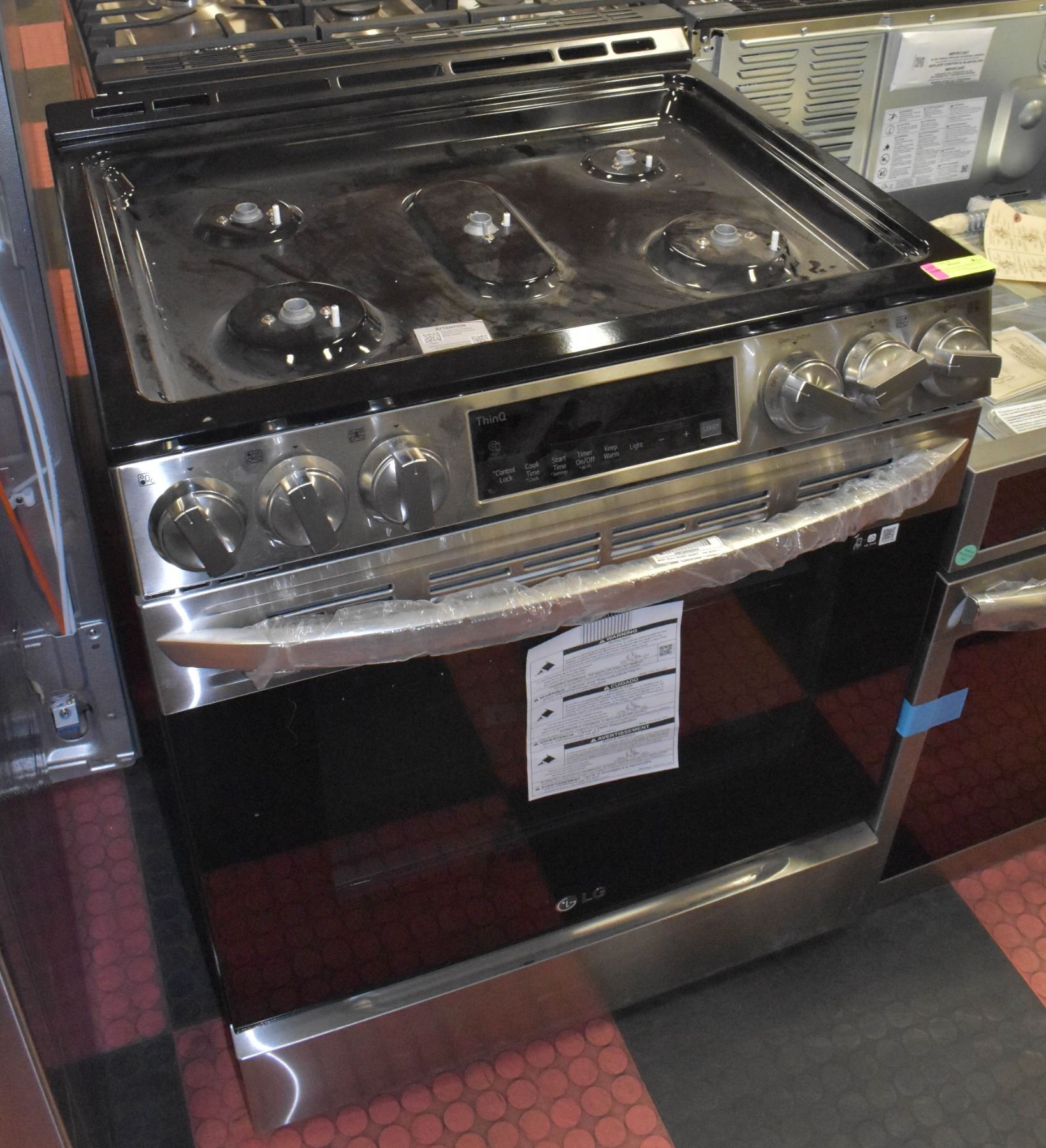 RANGE WITH AIR FRY & WIFI- STAINLESS STEEL. MODEL: LSGL5833F SERIAL: 211MMXN01890 **ALL ITEMS MUST BE REMOVED BY 5PM SATURDAY, MAY 20TH 2023. ALL REMAINING ITEMS WILL BE SUBJECT TO A $6.00 PER DAY STORAGE CHARGE. ANY ITEMS REMAINING AFTER MONDAY, JUNE 5TH, 2023 WILL BE CONSIDERED FORFEITED. NO REFUNDS WILL BE ISSUED FOR FORFEITED ITEMS. TO SCHEDULE A PICK UP APPOINTMENT CLICK HERE