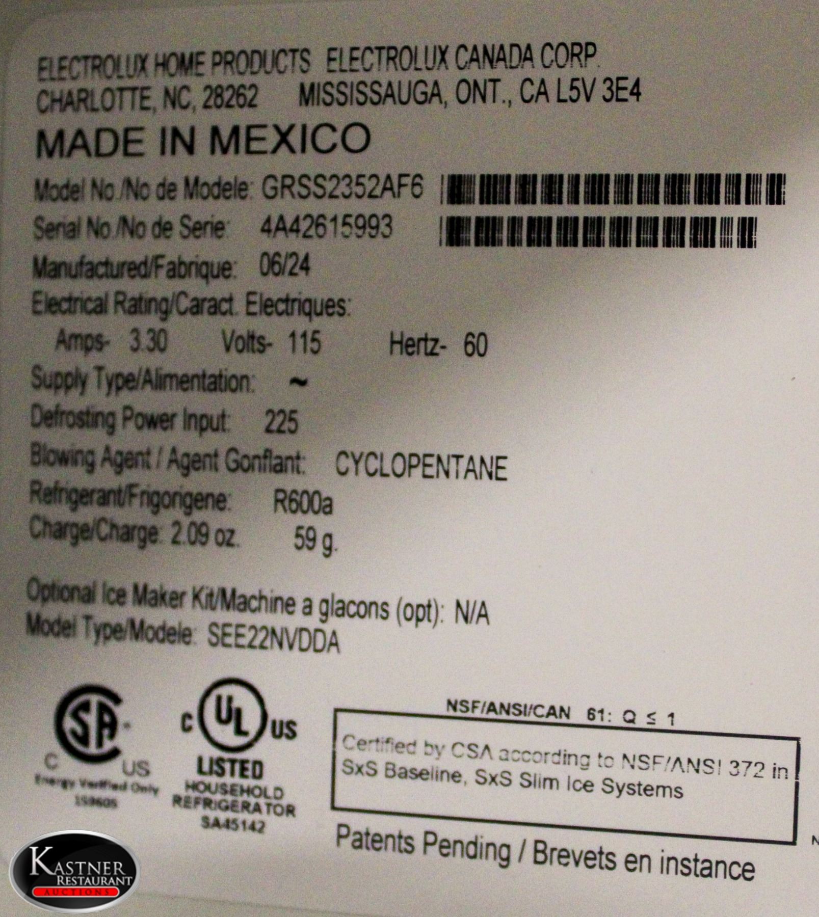 115V, 60HZ, 3.30AMPS, DEFROST POWER INPUT 225,
