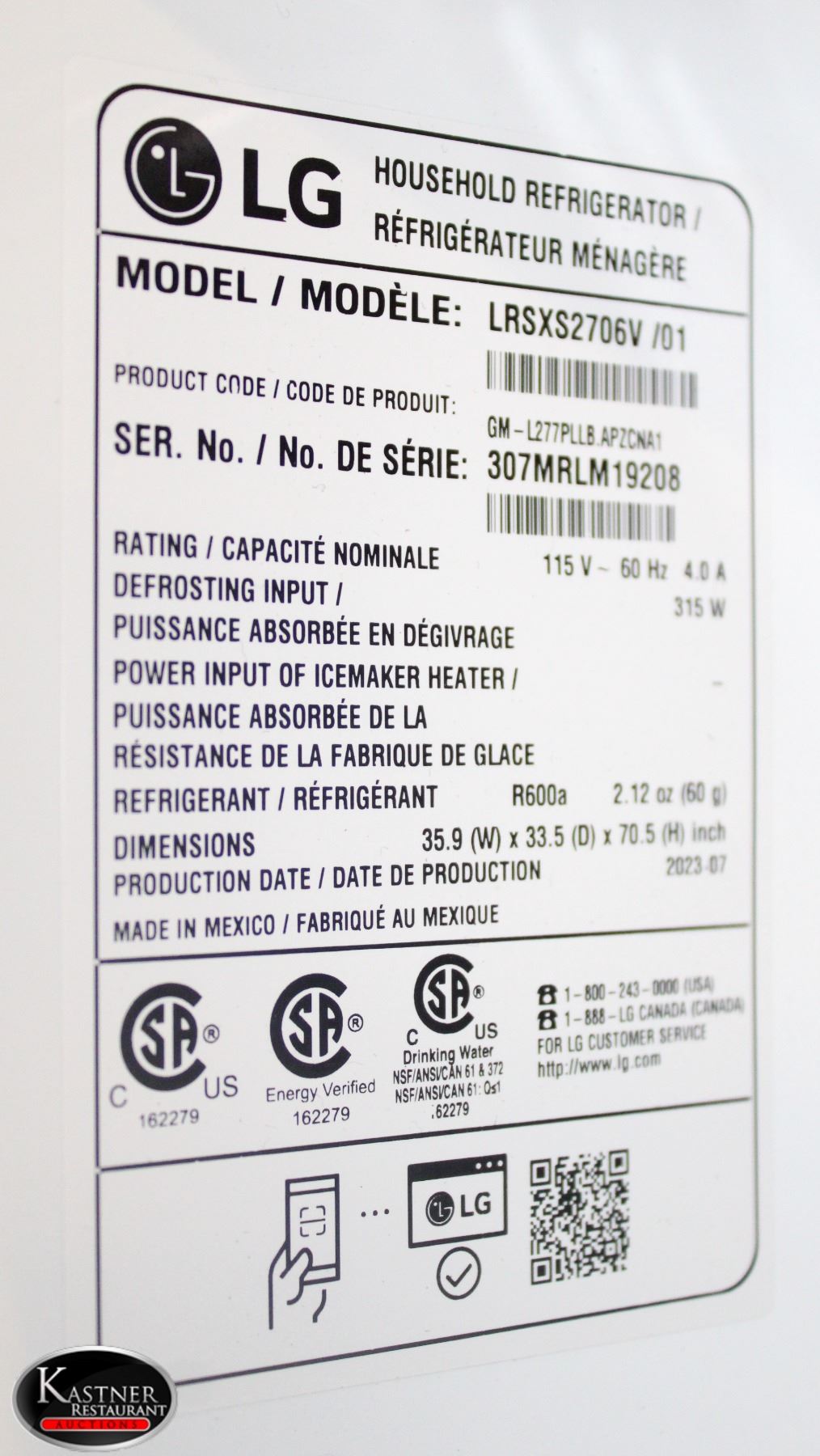 MODEL # LRSX2706V/01,, 115 VOLTS, 60 HZ, 4 AMPS, 315 WATTS, 36" X 33" X 70.5"