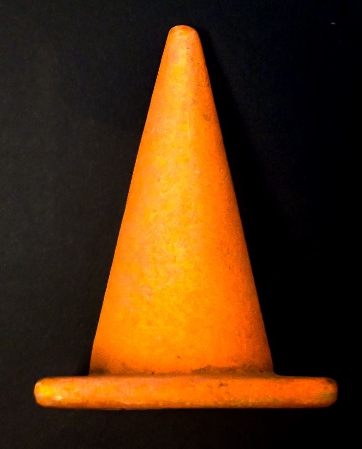 A MINIATURE SAFETY CONE PROP USED FOR THE 1997 DISASTER FILM "VOLCANO'FEATURING ACTORS TOMMY LEE JONES, ANNE HECHE,AND DON CHEADLE. INCLUDES A LETTER OF PROVENANCE.
