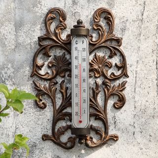 SCROLL WALL MOUNT THERMOMETER - 14" x 10" x 2" - ALUMINUM & GLASS