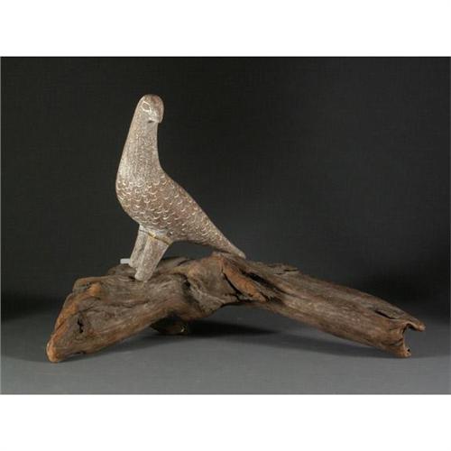 MIXED MEDIA SCULPTURE, Ebba Rapp (1909-1985), WA. A Bird Form on Driftwood. Ceramic body attached to wood base. Signed on underside of tail. Note condition to include break on both legs. More info. at the front desk. Approx. 16''T x 24''W.