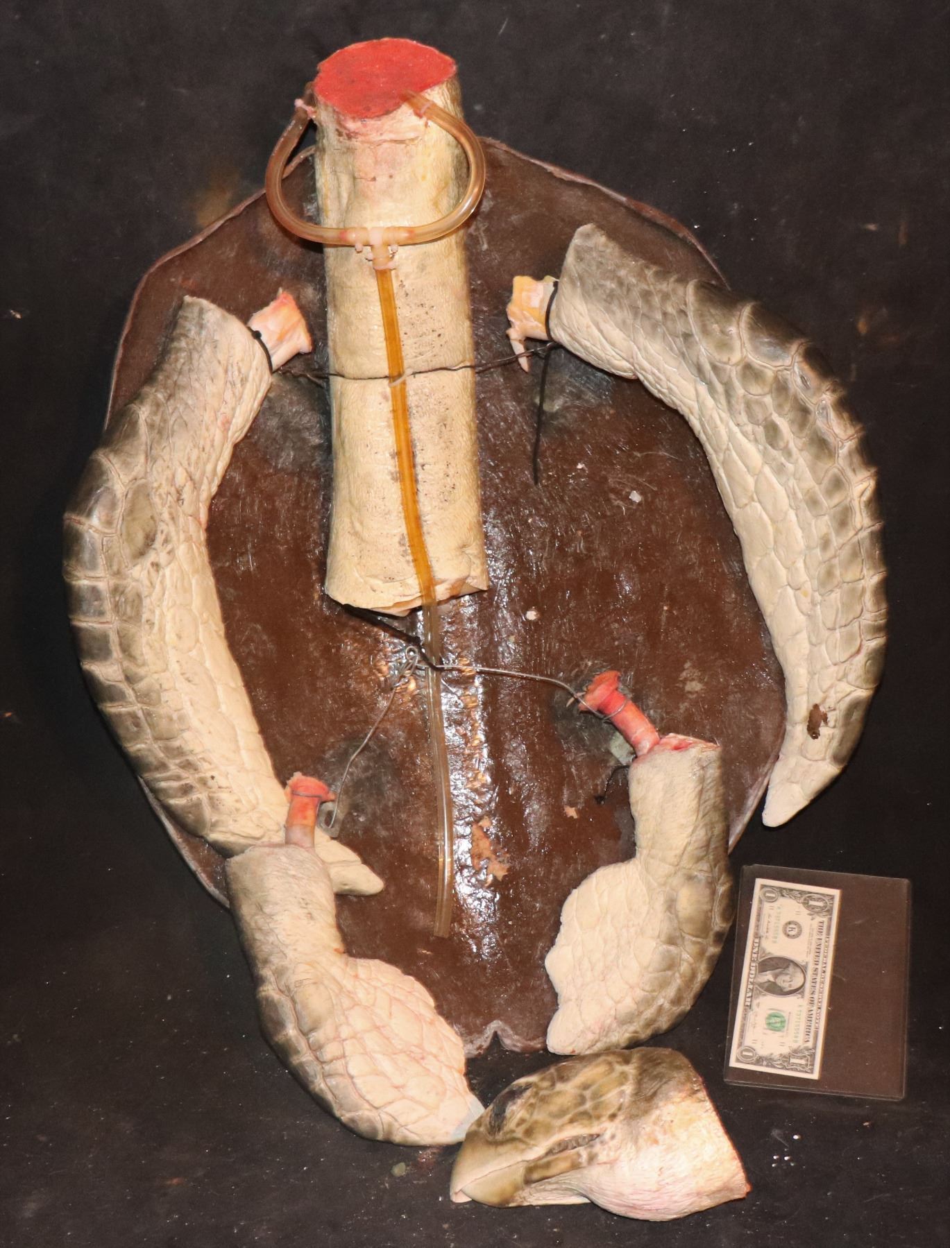 No bottom shell and head is easily glued. Made to mount on a wall.