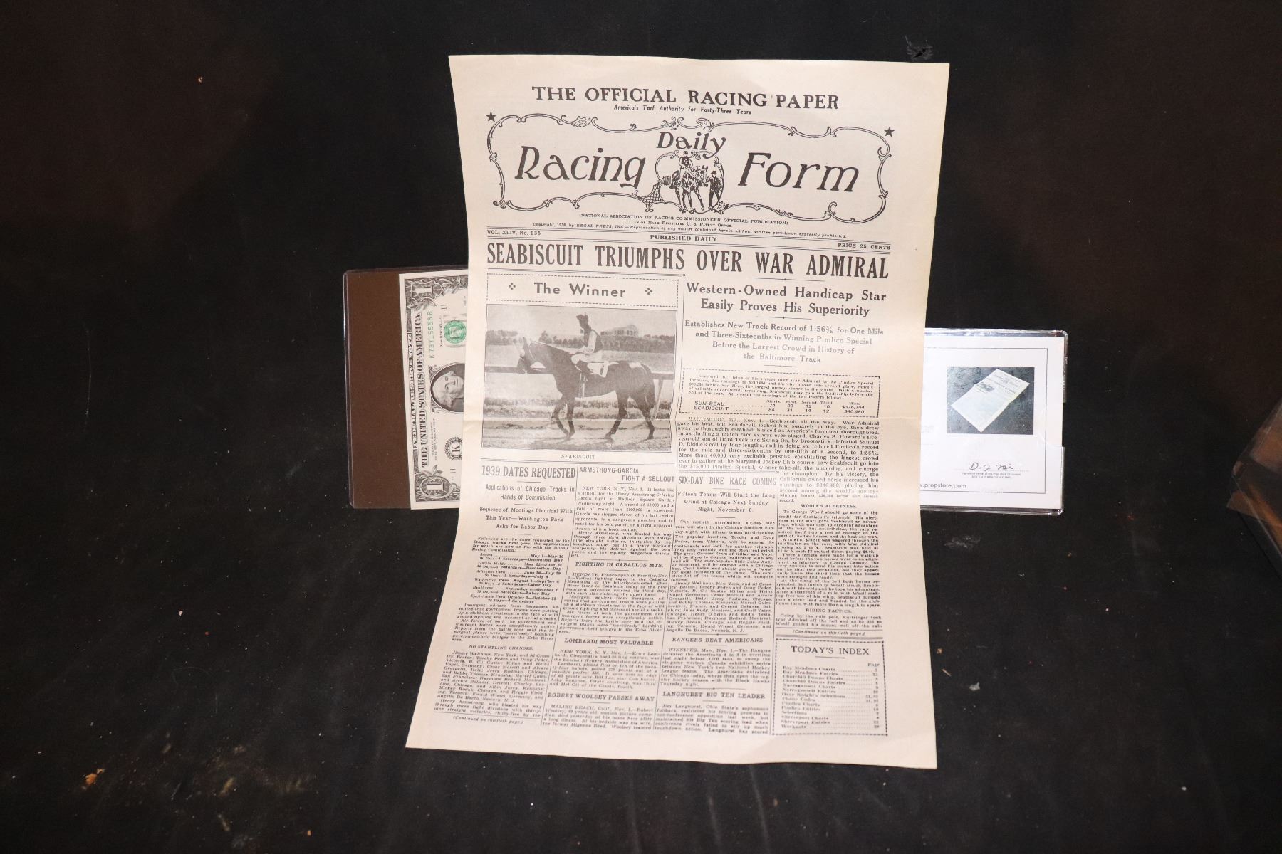 SEABISCUIT SCREEN USED HERO RACING FORM NEWSPAPER!