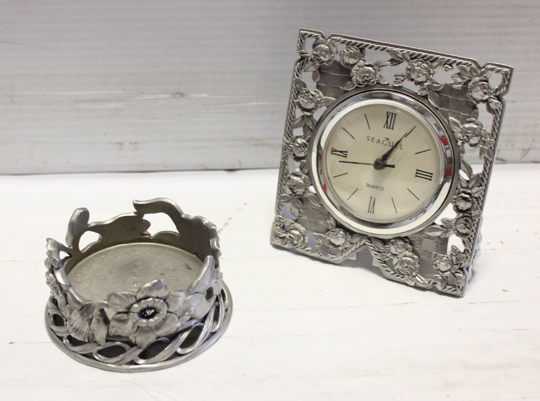 SEAGULL CANADA PEWTER CLOCK & CANDLE HOLDER