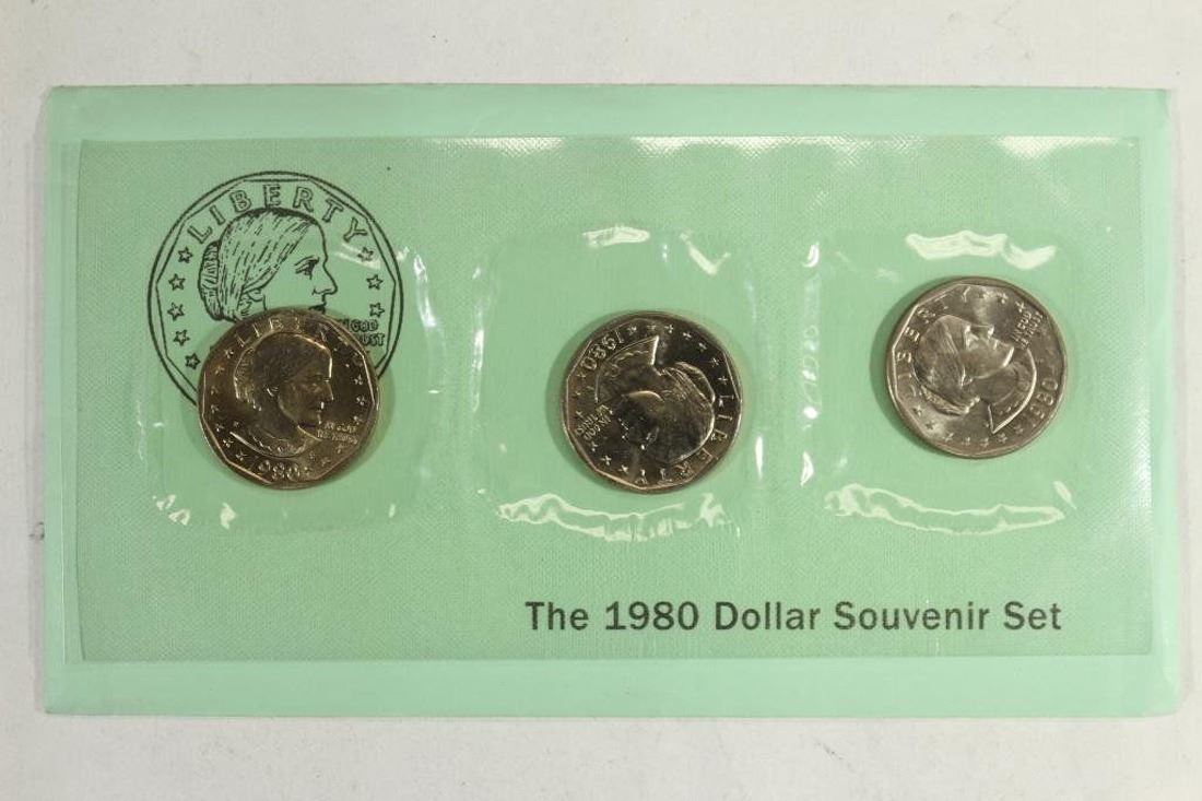 SEALED 1980 Susan B. Anthony Coin Souvenir Set. The 1980 Susan B. Anthony Dollar coin set inclused all 3 Mints, P, D, S