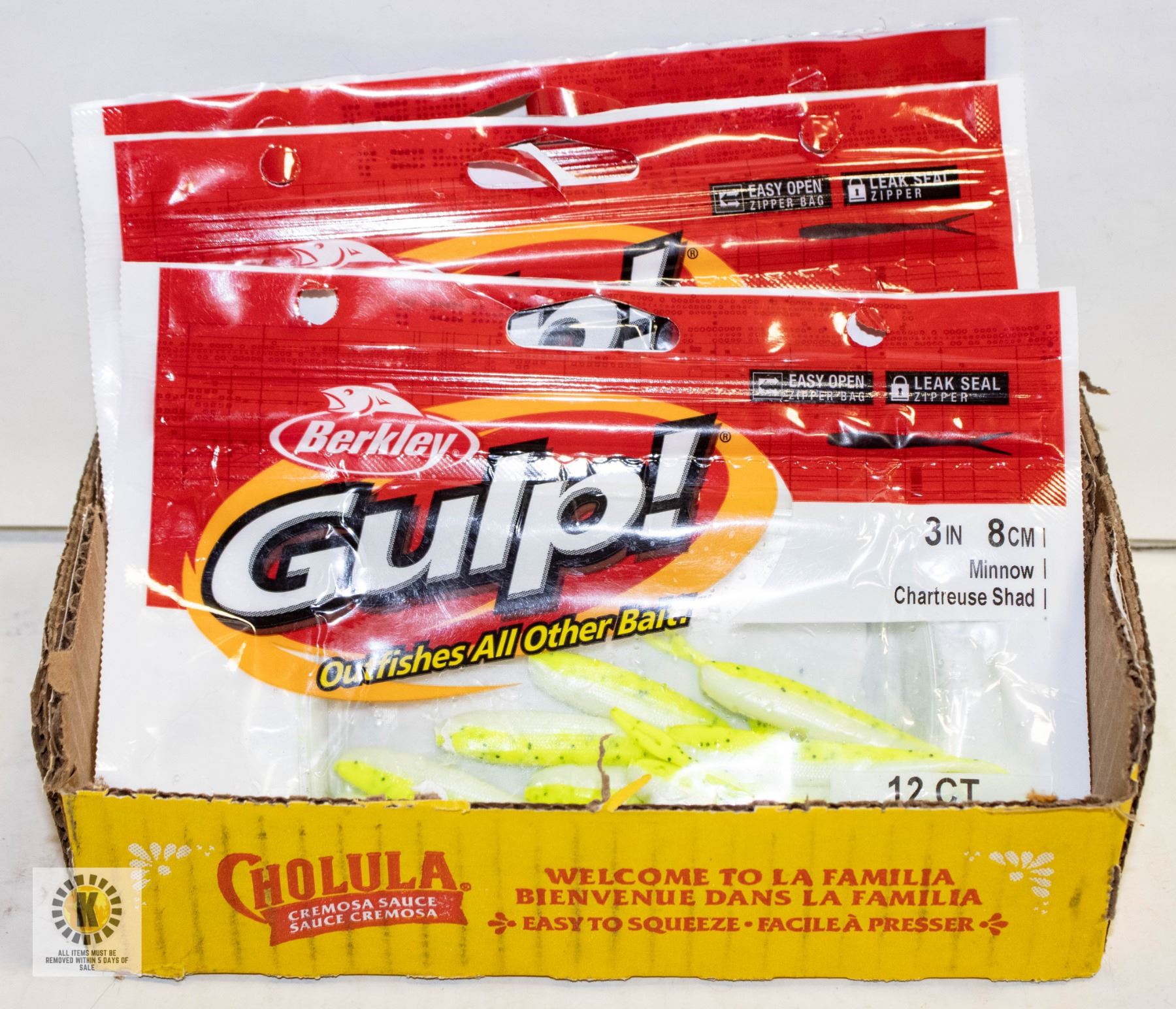 SOFT BAIT 3" 8 CM 12CT (12 PACK EACH) **ALL ITEMS MUST BE REMOVED BY 5PM SATURDAY, APRIL 12TH 2025. ALL REMAINING ITEMS WILL BE SUBJECT TO A $6.00 PER DAY STORAGE CHARGE. ANY ITEMS REMAINING AFTER MONDAY, APRIL 28TH 2025 WILL BE CONSIDERED FORFEITED. NO REFUNDS WILL BE ISSUED FOR FORFEITED ITEMS. TO SCHEDULE A PICK UP APPOINTMENT CLICK HERE