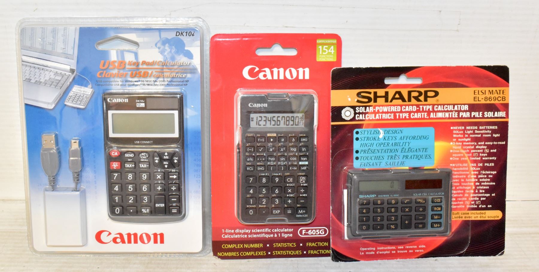 (2) CANON SCIENTIFIC CALCULATOR & USB KEYPAD/CALCULATOR 2 IN 1 W/SHARP SOLAR POWERED CARD CALCULATOR