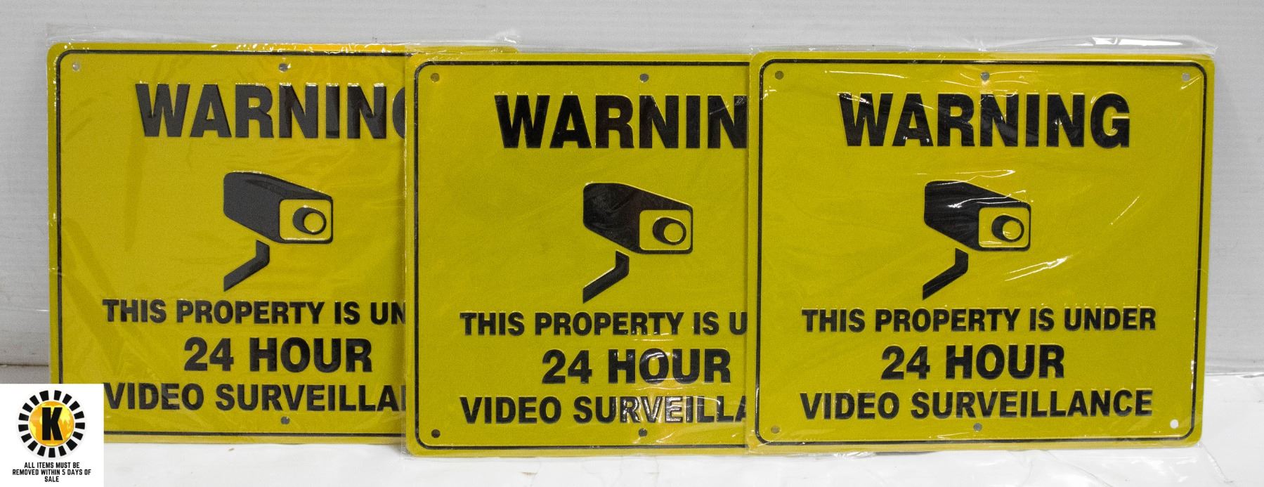 "WARNING THIS PROPERTY UNDER 24 HOUR VIDEO SURVELLIANCE" 8 1/2 X 10" **ALL ITEMS MUST BE REMOVED BY 5PM SATURDAY, AUGUST 26TH 2023. ALL REMAINING ITEMS WILL BE SUBJECT TO A $6.00 PER DAY STORAGE CHARGE. ANY ITEMS REMAINING AFTER MONDAY, SEPTEMBER 11TH, 2023 WILL BE CONSIDERED FORFEITED. NO REFUNDS WILL BE ISSUED FOR FORFEITED ITEMS. TO SCHEDULE A PICK UP APPOINTMENT CLICK HERE