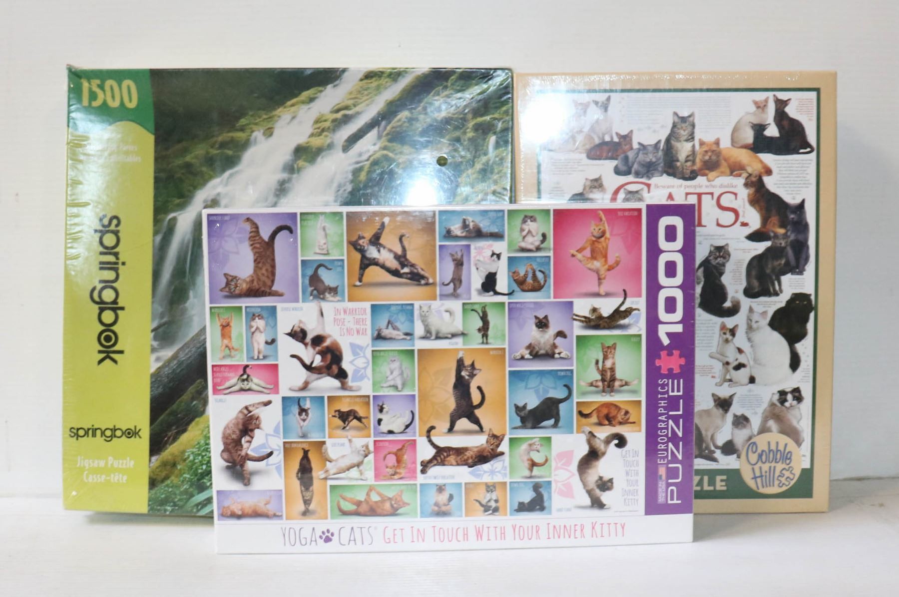 COBBLE HILLS & YOGA CATS (BOTH 1000 PC) W/SPRINGBOK HALLMARK 1500 PC