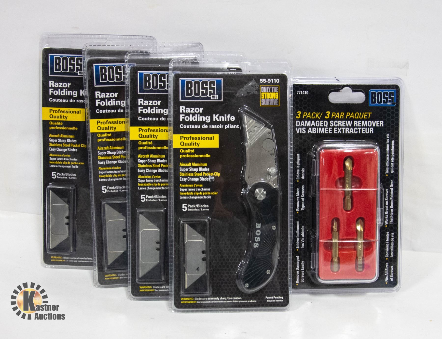 W/5 PACK BLADES & BOSS DAMAGED SCREW REMOVER 3-PACK **ALL ITEMS MUST BE REMOVED BY 5PM SATURDAY, DECEMBER 21ST 2024. ALL REMAINING ITEMS WILL BE SUBJECT TO A $6.00 PER DAY STORAGE CHARGE. ANY ITEMS REMAINING AFTER MONDAY, JANUARY 6TH 2025 WILL BE CONSIDERED FORFEITED. NO REFUNDS WILL BE ISSUED FOR FORFEITED ITEMS. TO SCHEDULE A PICK UP APPOINTMENT CLICK HERE