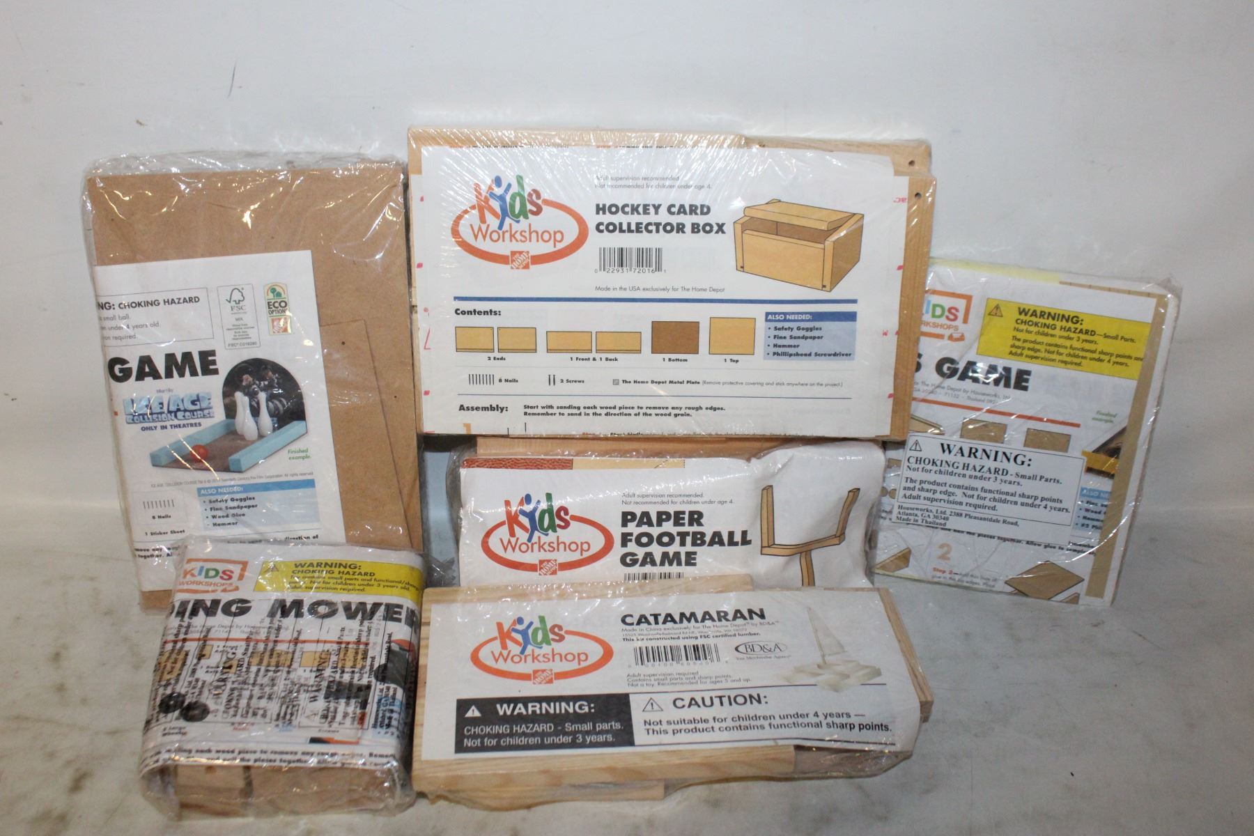 DEPOT RING TOSS, RIDING MOWER, BOWLING GAMES, CATAMARAN, PAPER FOOTBALL GAME, HOCKEY CARD COLLECTOR BOX