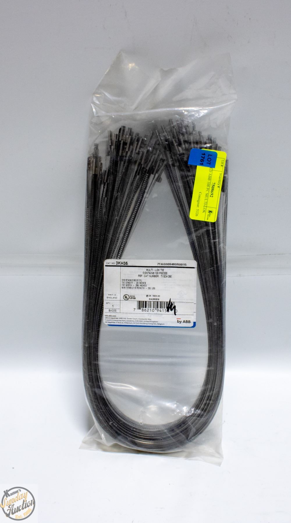 316 STAINLESS STEEL CABLE TIES 24" LENGTH MADE IN ENGLAND **ALL ITEMS MUST BE REMOVED BY 5PM SATURDAY, APRIL 11TH 2026. ALL REMAINING ITEMS WILL BE SUBJECT TO A $6.00 PER DAY STORAGE CHARGE. ANY ITEMS REMAINING AFTER MONDAY, APRIL 27TH 2026 WILL BE CONSIDERED FORFEITED. NO REFUNDS WILL BE ISSUED FOR FORFEITED ITEMS. TO SCHEDULE A PICK UP APPOINTMENT CLICK HERE