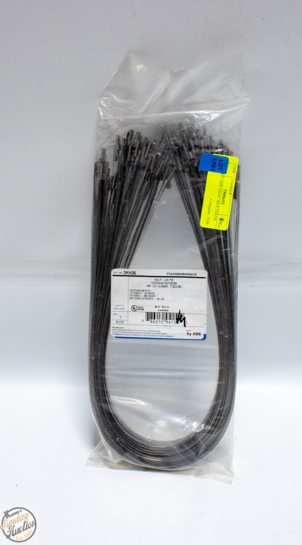 316 STAINLESS STEEL CABLE TIES 24" LENGTH MADE IN ENGLAND **ALL ITEMS MUST BE REMOVED BY 5PM SATURDAY, APRIL 11TH 2026. ALL REMAINING ITEMS WILL BE SUBJECT TO A $6.00 PER DAY STORAGE CHARGE. ANY ITEMS REMAINING AFTER MONDAY, APRIL 27TH 2026 WILL BE CONSIDERED FORFEITED. NO REFUNDS WILL BE ISSUED FOR FORFEITED ITEMS. TO SCHEDULE A PICK UP APPOINTMENT CLICK HERE
