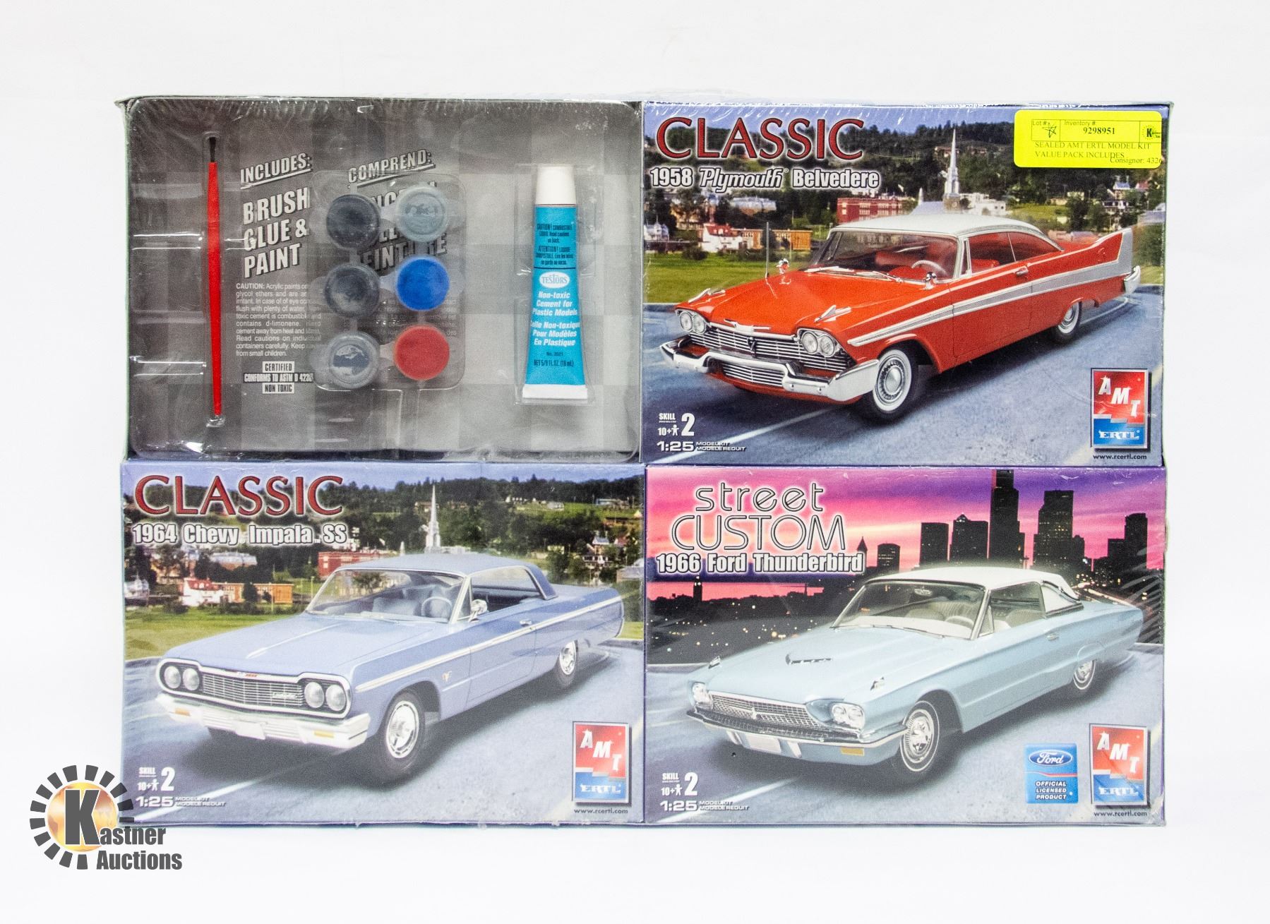 THREE 1:25 AMT MODEL KITS, BRUSH GLUE AND PAINT
