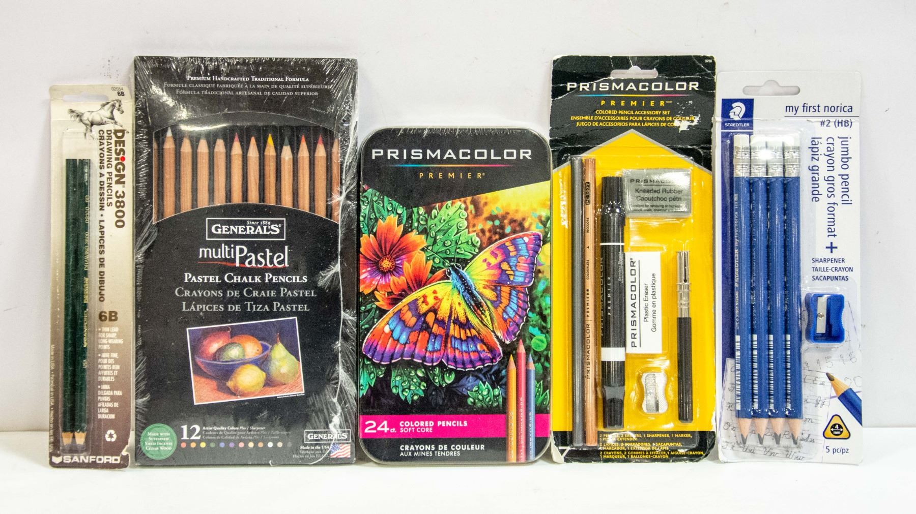 MULTI PASTEL CHALK PENCILS COLORS (12) W/2 PRISMACOLOR ITEMS (24) SOFT CORE & PREMIER COLOURED ACCESSORY SET & STADTLER JUMBO PENCILS #2HB SET OF 5 & SHARPENER**ALL ITEMS MUST BE REMOVED BY 5PM MONDAY, OCTOBER 10TH, 2022. ALL REMAINING ITEMS WILL BE SUBJECT TO A $6.00 PER DAY STORAGE CHARGE. ANY ITEMS REMAINING AFTER MONDAY, OCTOBER 24TH, 2022 WILL BE CONSIDERED FORFEITED. NO REFUNDS WILL BE ISSUED FOR FORFEITED ITEMS. TO SCHEDULE A PICK UP APPOINTMENT CLICK HERE