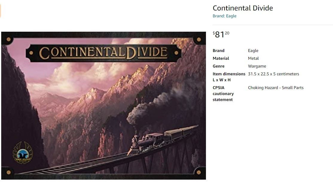 SEALED CONTINENTAL DIVIDE BOARD GAME