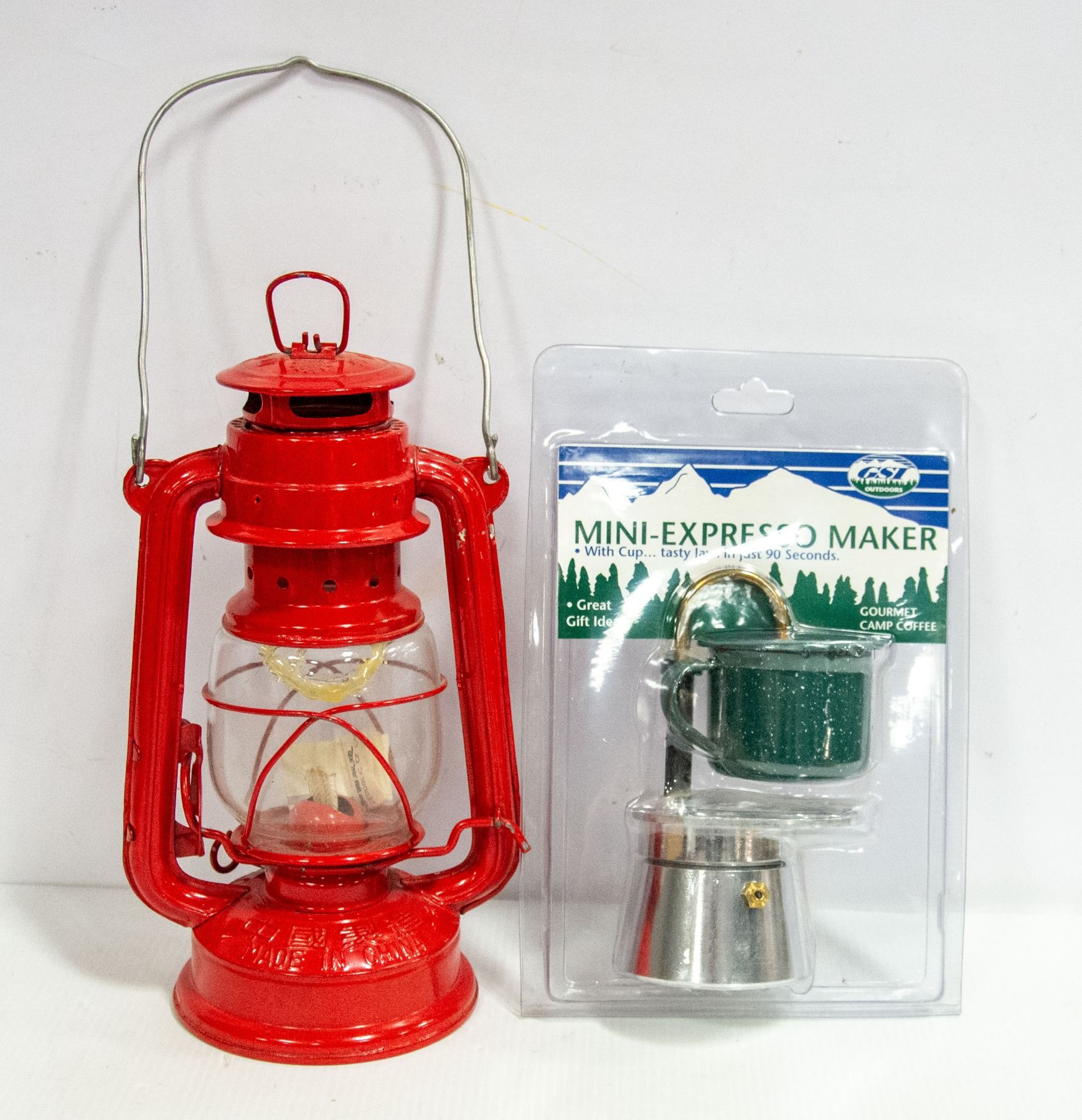 STOVETOP MINI-EXPRESSO MAKER WITH CUP MADE IN ITALY W/BIG WHEEL LANTERN (UNUSED)