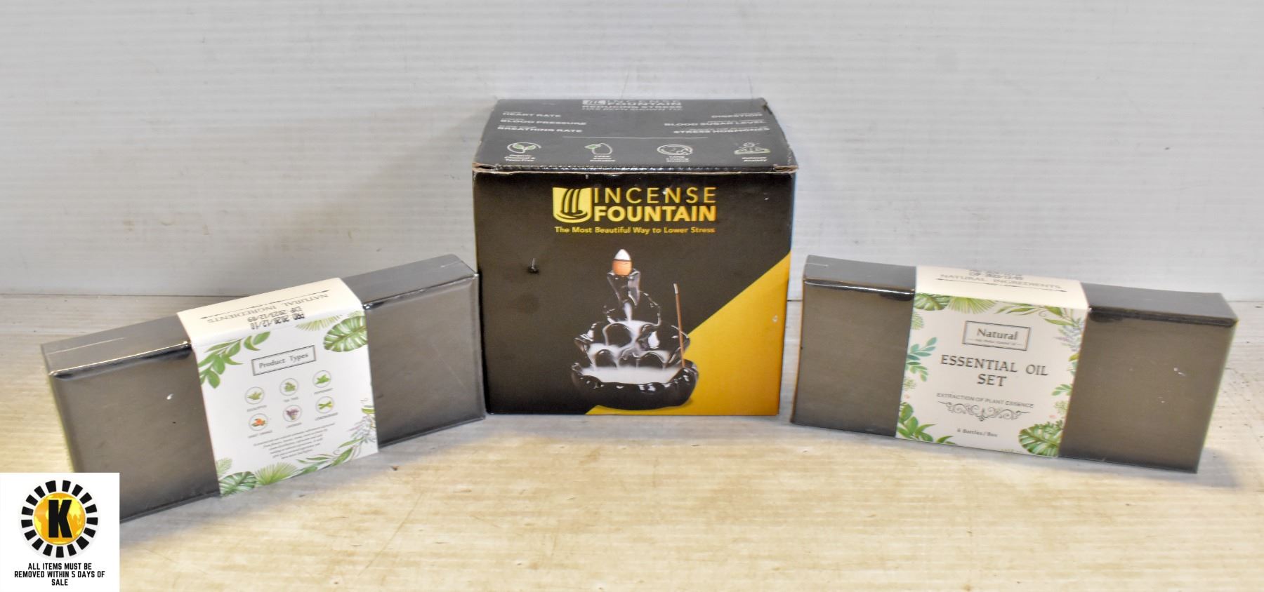 AROMATHERAPY SETS 12 PC'S W/INCENSE FOUNTAIN