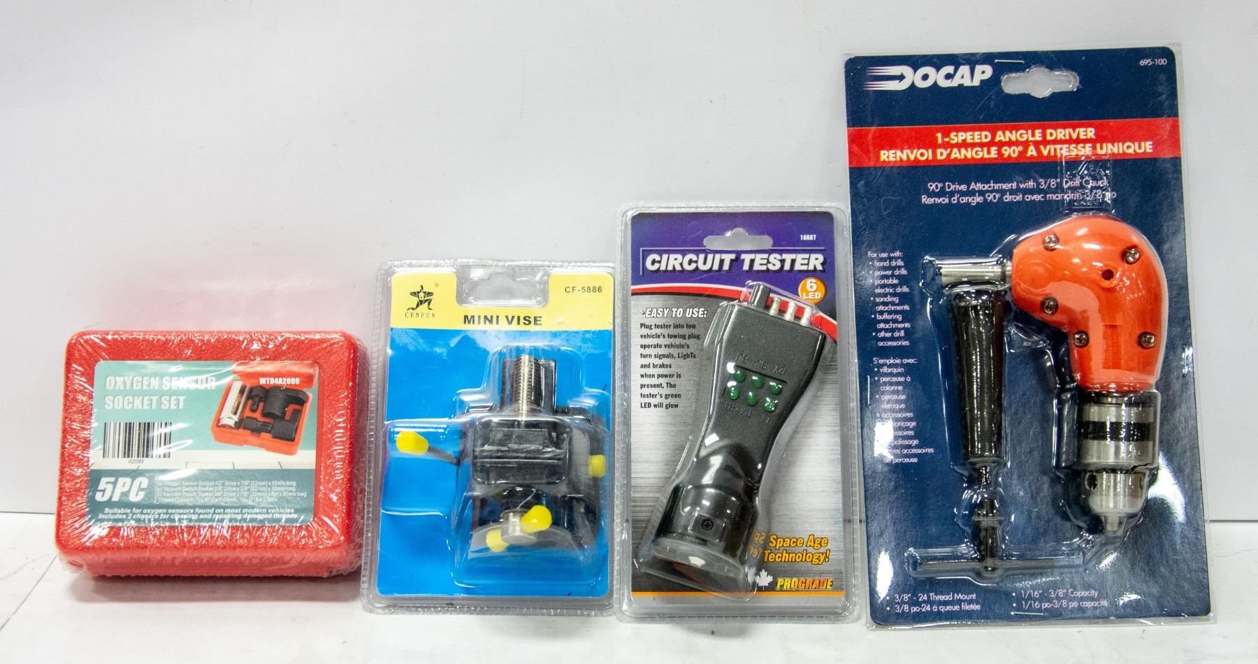 ANGLE DRIVER, CIRCUIT TESTER, MINI VICE & OXYGEN SENSOR SOCKET SET 5 PC