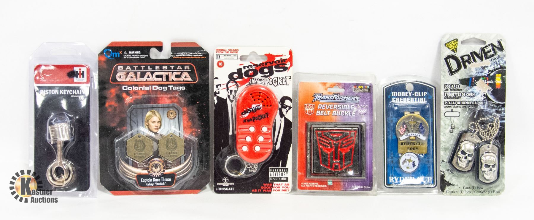 KEYCHAIN, RYDER MONEY CLIP, TRANSFORMER BELT BUCKLE 2007, BATTLESTAR GALACTICA COLONIAL DOG TAGS, DRIVEN DOG TAGS AIR FRESHER & RESERVOIR DOGS POCKET ELECTRONIC TALKING KEYCHAIN **ALL ITEMS MUST BE REMOVED BY 5PM SATURDAY, OCTOBER 14TH 2023. ALL REMAINING ITEMS WILL BE SUBJECT TO A $6.00 PER DAY STORAGE CHARGE. ANY ITEMS REMAINING AFTER MONDAY, OCTOBER 30TH, 2023 WILL BE CONSIDERED FORFEITED. NO REFUNDS WILL BE ISSUED FOR FORFEITED ITEMS. TO SCHEDULE A PICK UP APPOINTMENT CLICK HERE