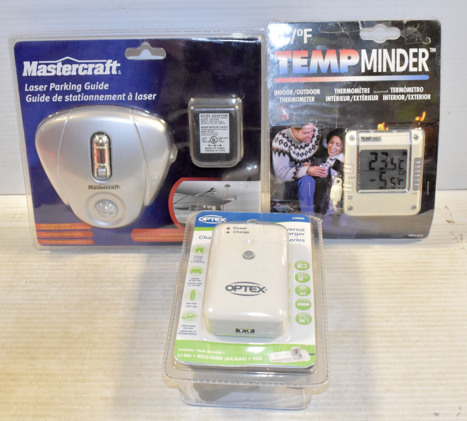 BATTERY CHARGER #L15200, MASTERCRAFT LASER PARKING GUIDE & TEMPMINDER THERMOMETER