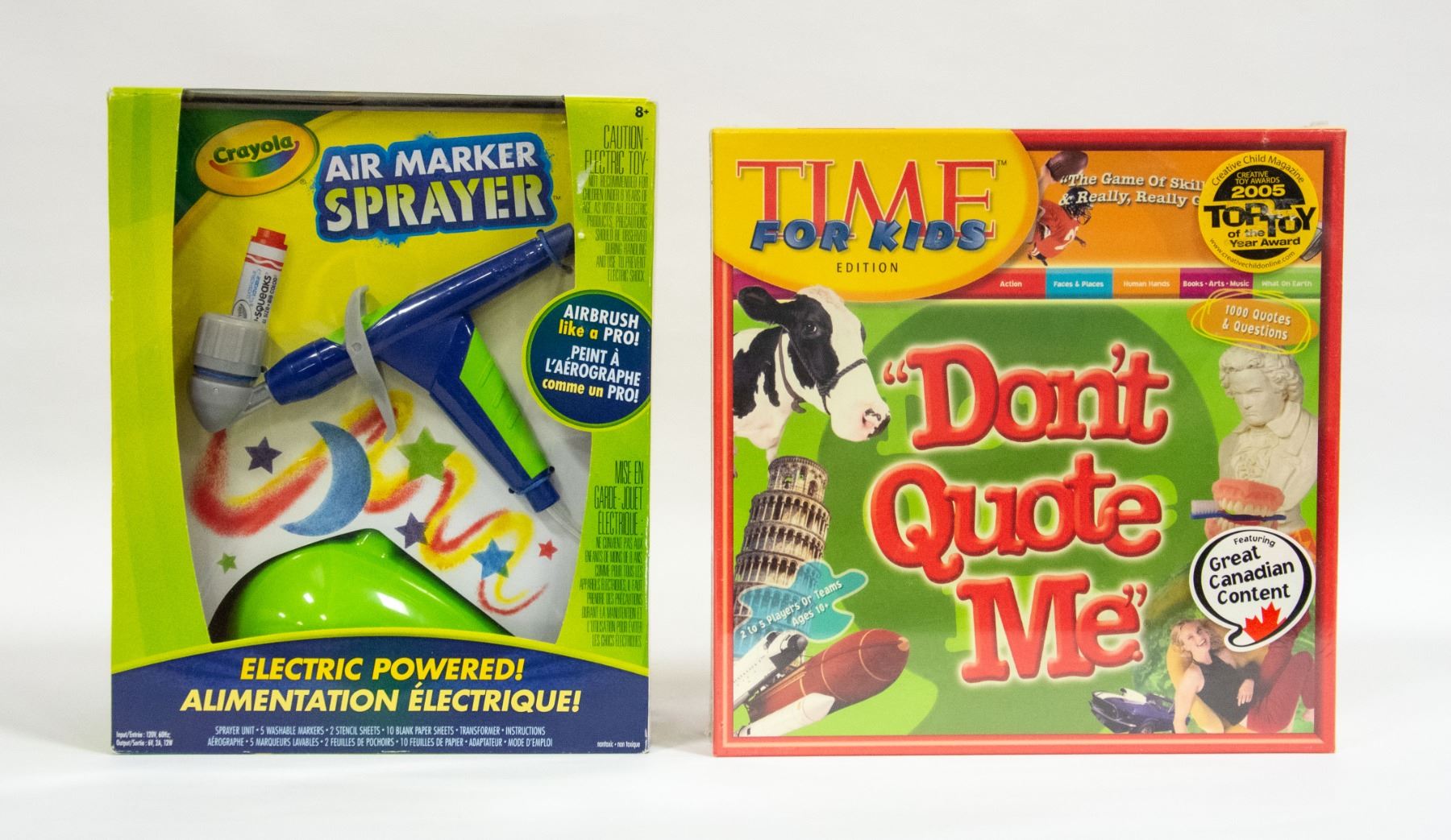 DON'T QUOTE ME TIME FOR KIDS EDITION BOARD GAME & CRAYOLA AIR MARKER SPRAYER ELECTRIC POWERED **ALL ITEMS MUST BE REMOVED BY 5PM SATURDAY, MARCH 18TH 2023. ALL REMAINING ITEMS WILL BE SUBJECT TO A $6.00 PER DAY STORAGE CHARGE. ANY ITEMS REMAINING AFTER MONDAY, APRIL 3RD, 2023 WILL BE CONSIDERED FORFEITED. NO REFUNDS WILL BE ISSUED FOR FORFEITED ITEMS. TO SCHEDULE A PICK UP APPOINTMENT CLICK HERE