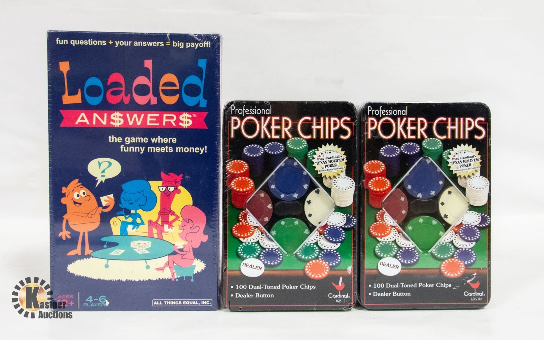 W/SEALED 2 SETS OF CARDINAL POKER CHIPS IN TIN 100 EACH **ALL ITEMS MUST BE REMOVED BY 5PM SATURDAY, JANUARY 4TH 2025. ALL REMAINING ITEMS WILL BE SUBJECT TO A $6.00 PER DAY STORAGE CHARGE. ANY ITEMS REMAINING AFTER MONDAY, JANUARY 27TH 2025 WILL BE CONSIDERED FORFEITED. NO REFUNDS WILL BE ISSUED FOR FORFEITED ITEMS. TO SCHEDULE A PICK UP APPOINTMENT CLICK HERE