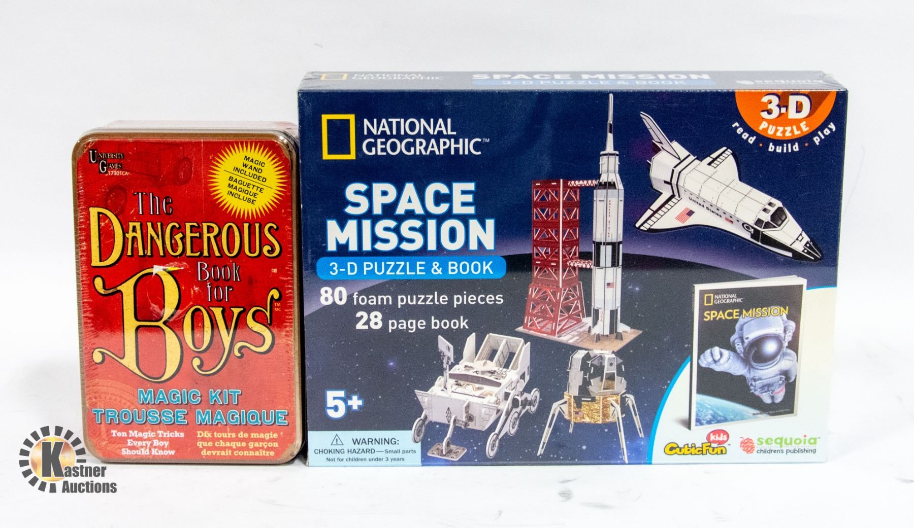 SPACE MISSION 3D PUZZLE AND BOOK W/SEALED 2008 UNIVERSITY GAMES THE DANGEROUS BOOK FOR BOYS MAGIC KIT IN TIN **ALL ITEMS MUST BE REMOVED BY 5PM SATURDAY, DECEMBER 30TH 2023. ALL REMAINING ITEMS WILL BE SUBJECT TO A $6.00 PER DAY STORAGE CHARGE. ANY ITEMS REMAINING AFTER MONDAY, JANUARY 8TH, 2023 WILL BE CONSIDERED FORFEITED. NO REFUNDS WILL BE ISSUED FOR FORFEITED ITEMS. TO SCHEDULE A PICK UP APPOINTMENT CLICK HERE