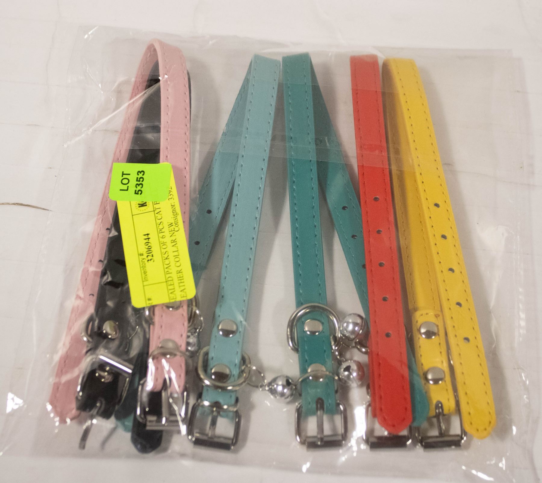 SEALED PACKS OF 6 PCS CAT BELL LEATHER COLLAR NEW