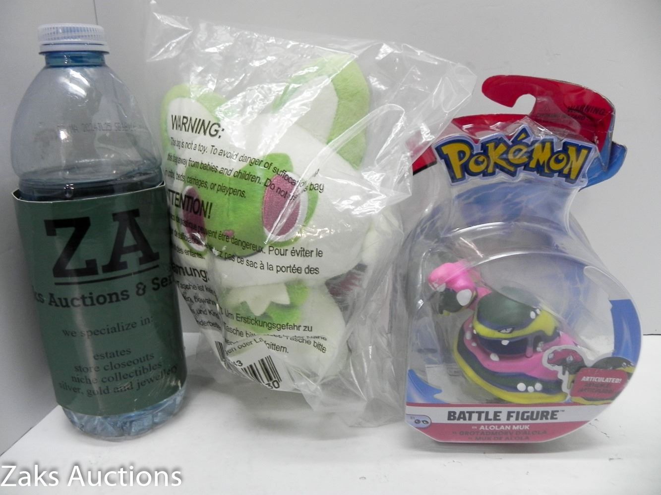 POKEMON CENTRE ORIGINAL PLUSH DOLL "SPRIGATITO" & POKEMON BATTLE FIGURE AOLAN MUK