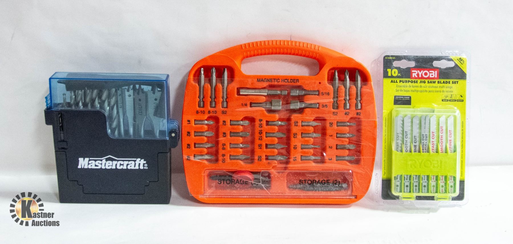 BLADE SET W/MASTERCRAFT ASSORTMENT DRILL BITS IN CASE (1 MISSING) & BLACK & DECKER BITS **ALL ITEMS MUST BE REMOVED BY 5PM SATURDAY, SEPTEMBER 21ST 2024. ALL REMAINING ITEMS WILL BE SUBJECT TO A $6.00 PER DAY STORAGE CHARGE. ANY ITEMS REMAINING AFTER MONDAY, OCTOBER 7TH 2024 WILL BE CONSIDERED FORFEITED. NO REFUNDS WILL BE ISSUED FOR FORFEITED ITEMS. TO SCHEDULE A PICK UP APPOINTMENT CLICK HERE