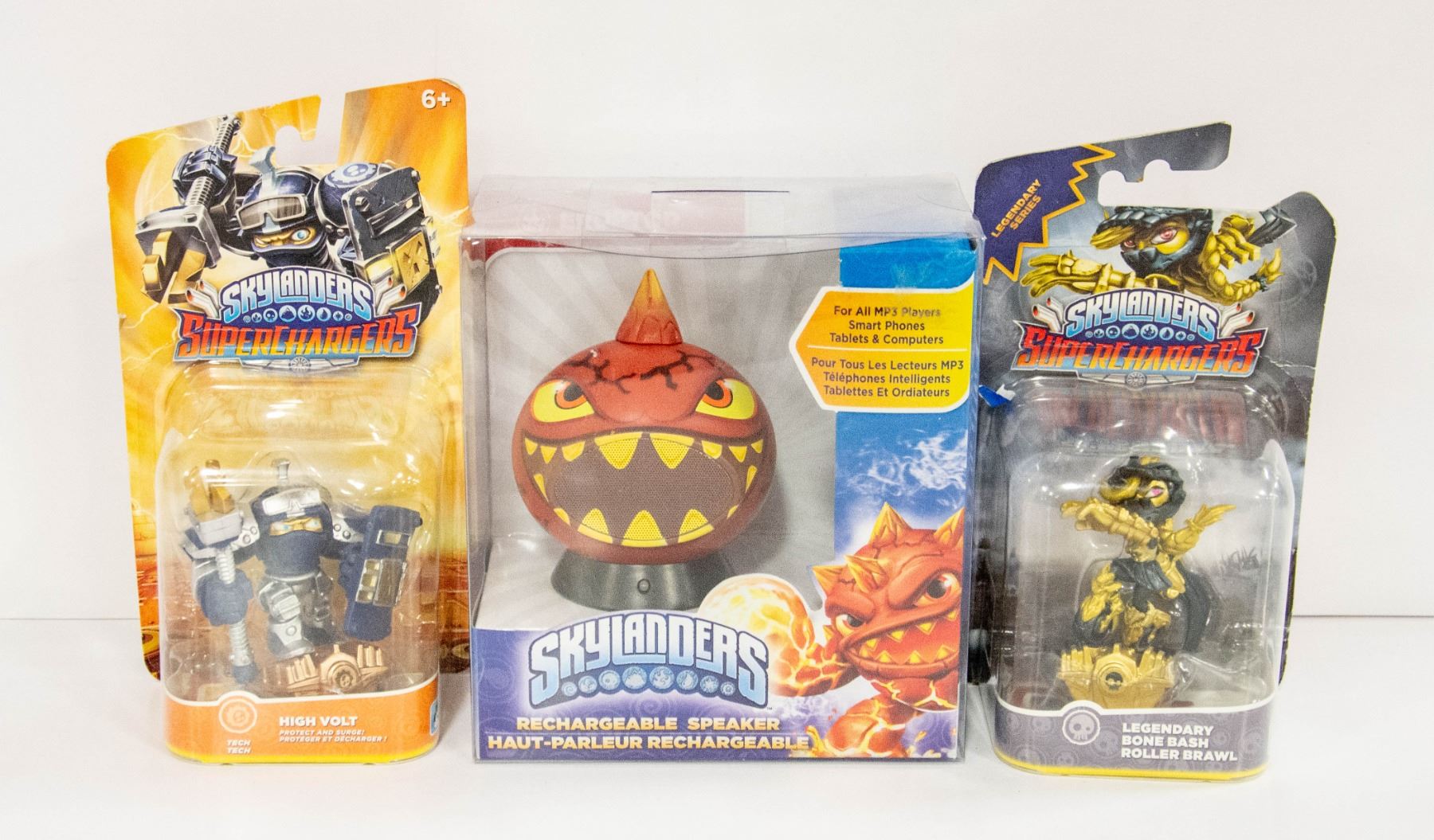 SPEAKER LIGHT CORE ERUPTOR W/SEALED 2 SKYLANDERS SUPERCHARGERS HIGH VOLT & LEGENDARY BORE BASS ROLLER BRAWL