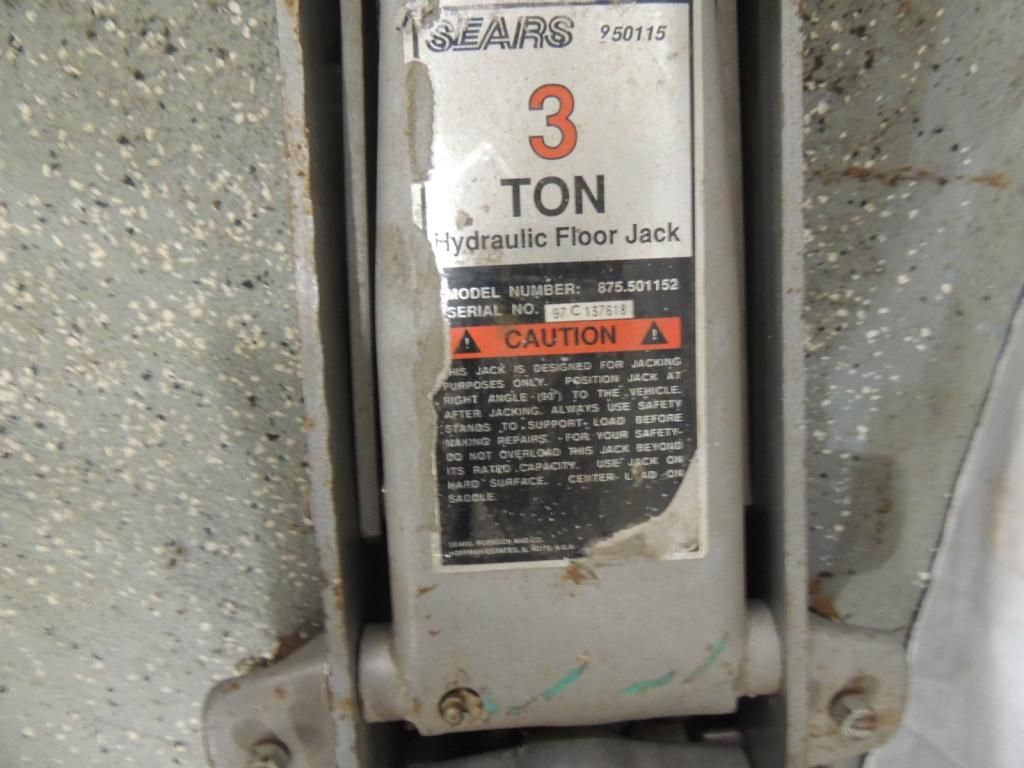 SEAR 3 TON HYDRAULIC FLOOR JACK. AS SHOWN. SEE PHOTO FOR MORE DETAILS.