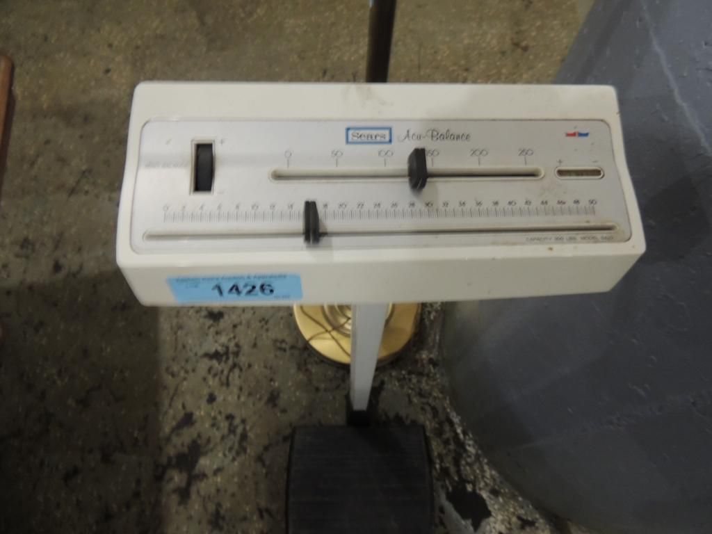 SEARS ACU BALANCE STANDING SCALE AS SHOWN. SEE PHOTO FOR MORE DETAILS.