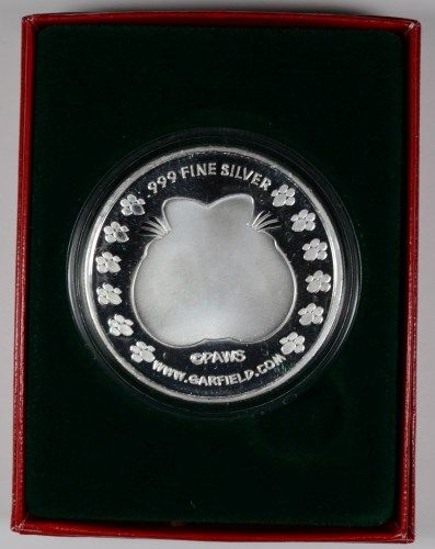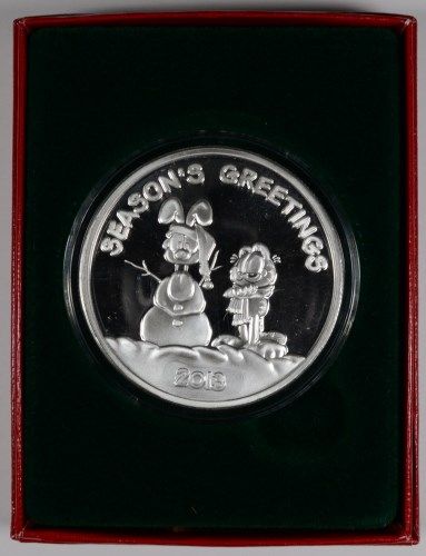 SEASONS GREETINGS WITH GARFIELD & ODIE SNOWMAN, ONE Oz. .999 SILVER ART ROUND
