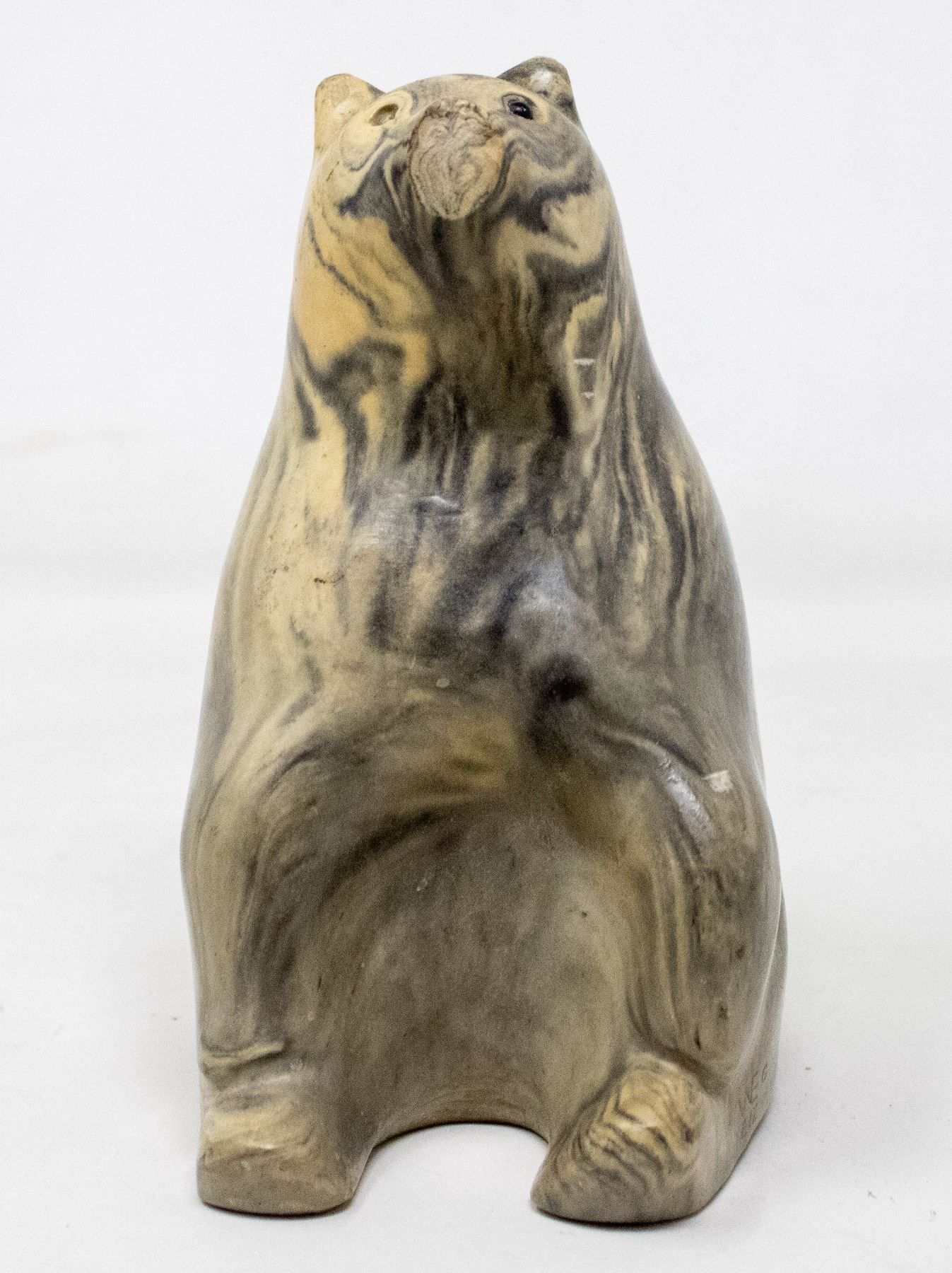 SEATED BEAR CARVED SOAPSTONE INUIT STATUE CHIPPED