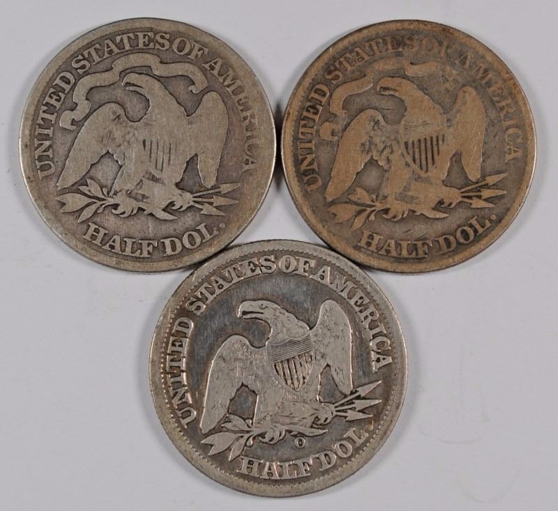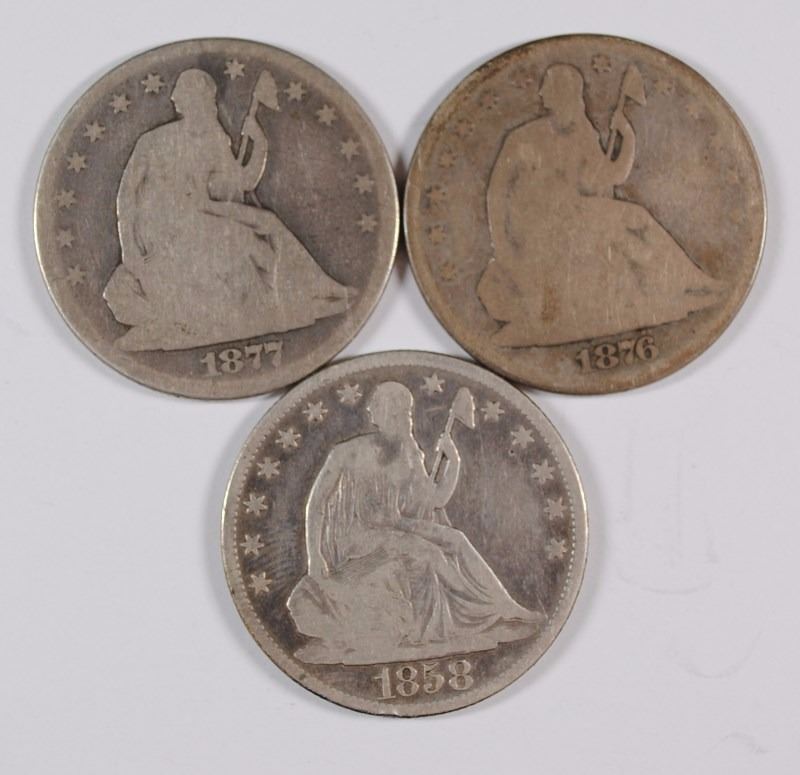 SEATED HALF DOLLARS, 1876 GOOD, 1877 GOOD & 1858-O VG/FINE