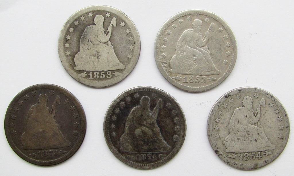 SEATED QTR LOT: 2-1853-ARROWS, 1854, 1873 ARROWS,