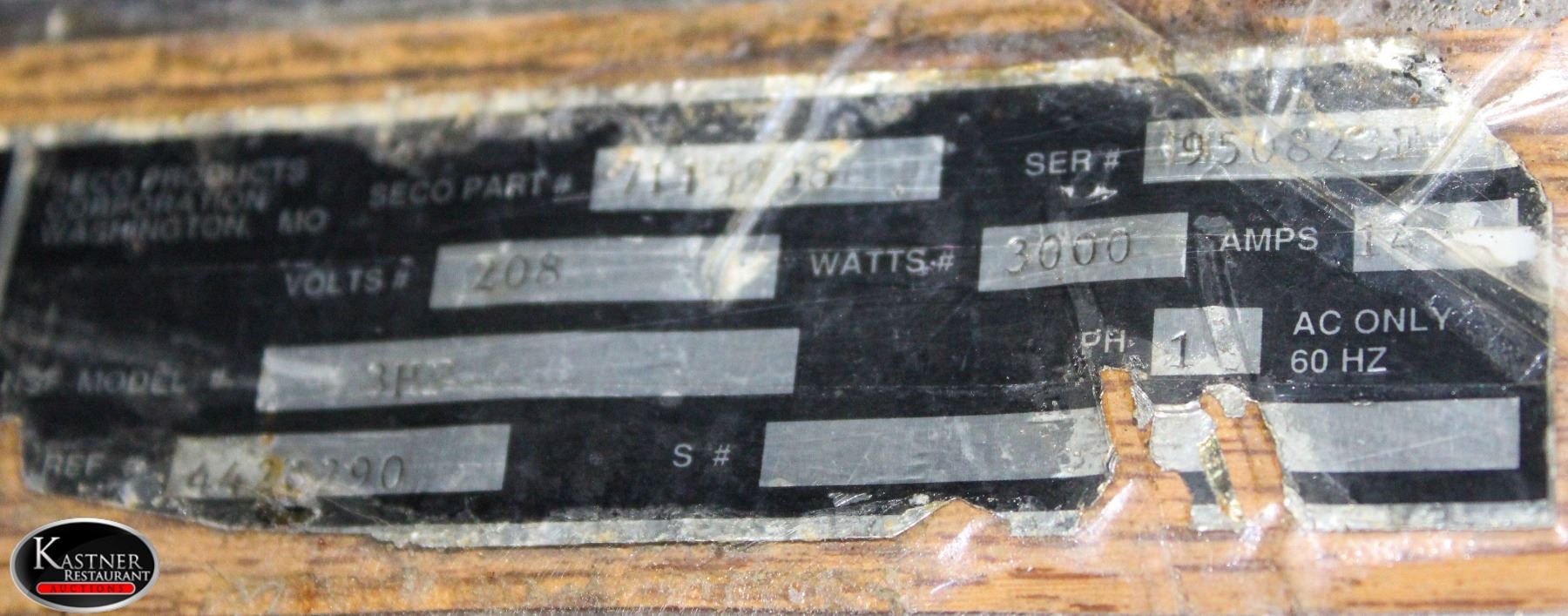 ON CASTORS MODEL # 3HZ, 208 VOLTS, 3000 WATTS, AC ONLYM 60 HZ, 46" X 28" X 53"