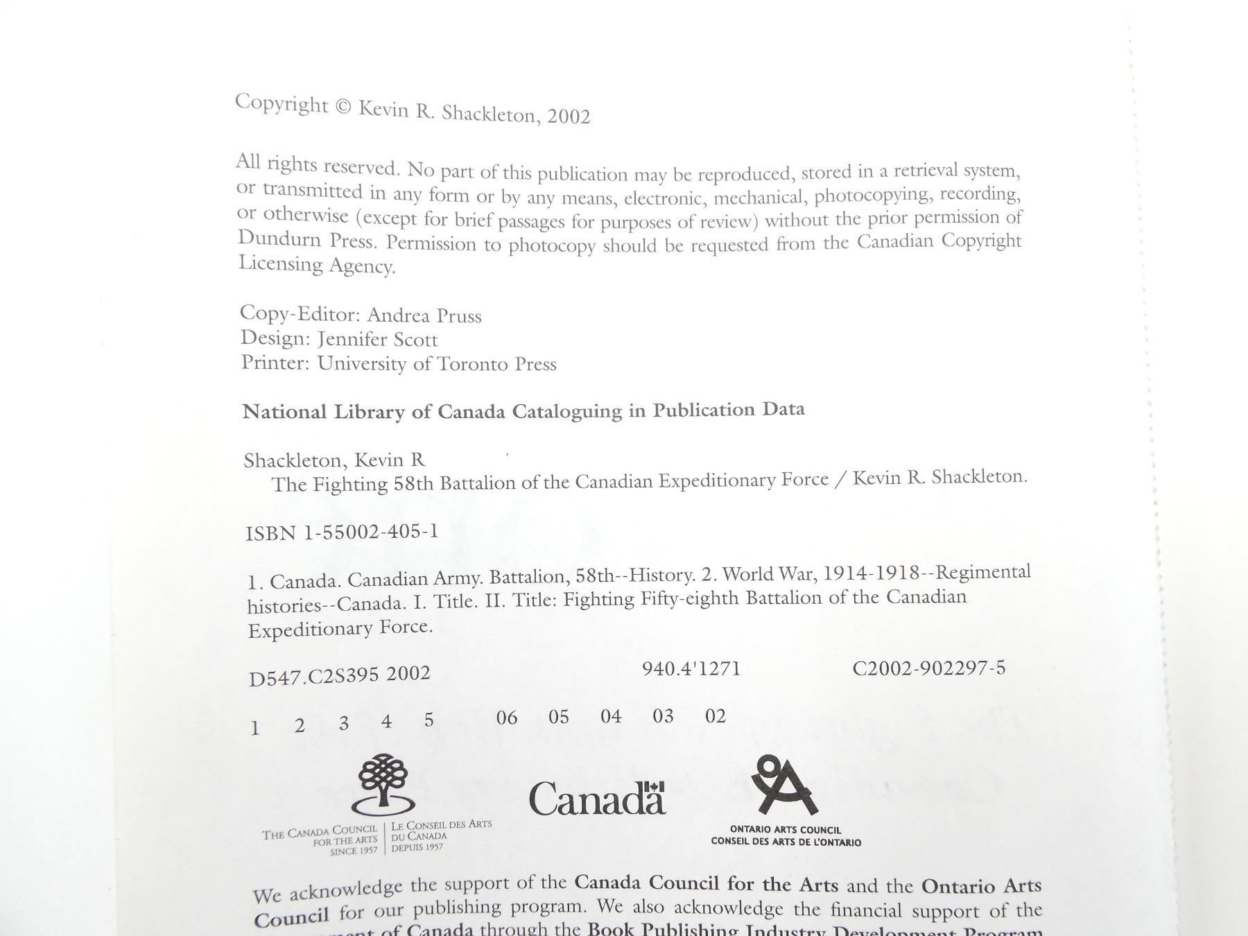 (1) BY KEVIN R. SHACKLETON, SOFT COVER, ISBN: 1-55002-405-1. SEE PHOTOS.