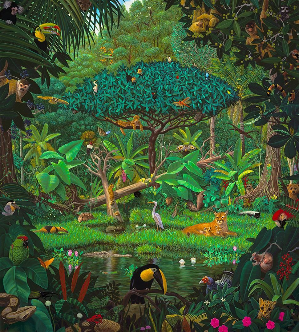 Giclee on canvas, limited edition hand embellished with oil paint by Charles Lynn Bragg. Mother Nature watches over one of her Tropical Masterpieces. 20 x 22.5