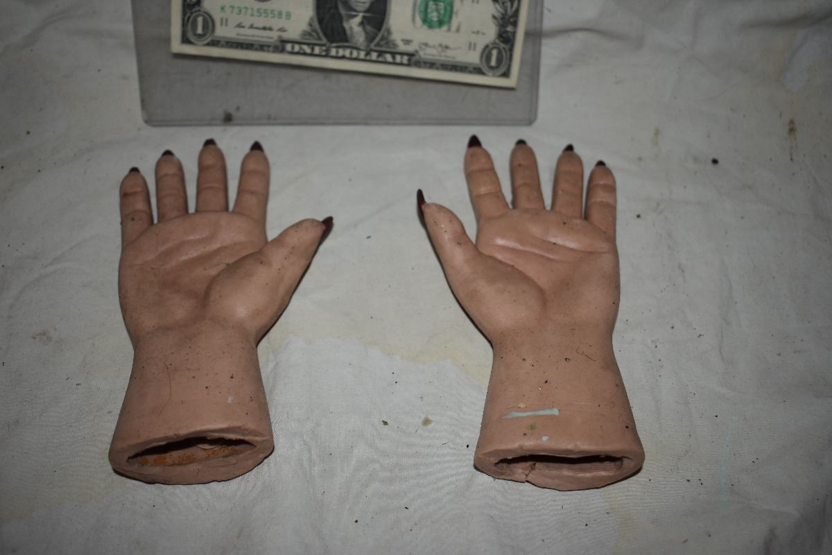 These are a matched pair of SCREEN USED TIFFANY hands used on the Animatronic Hero TIFFANY puppet in SEED OF CHUCKY! I know they are SCREEN USED because of the dirt and wear. [Unused ones are mint.]