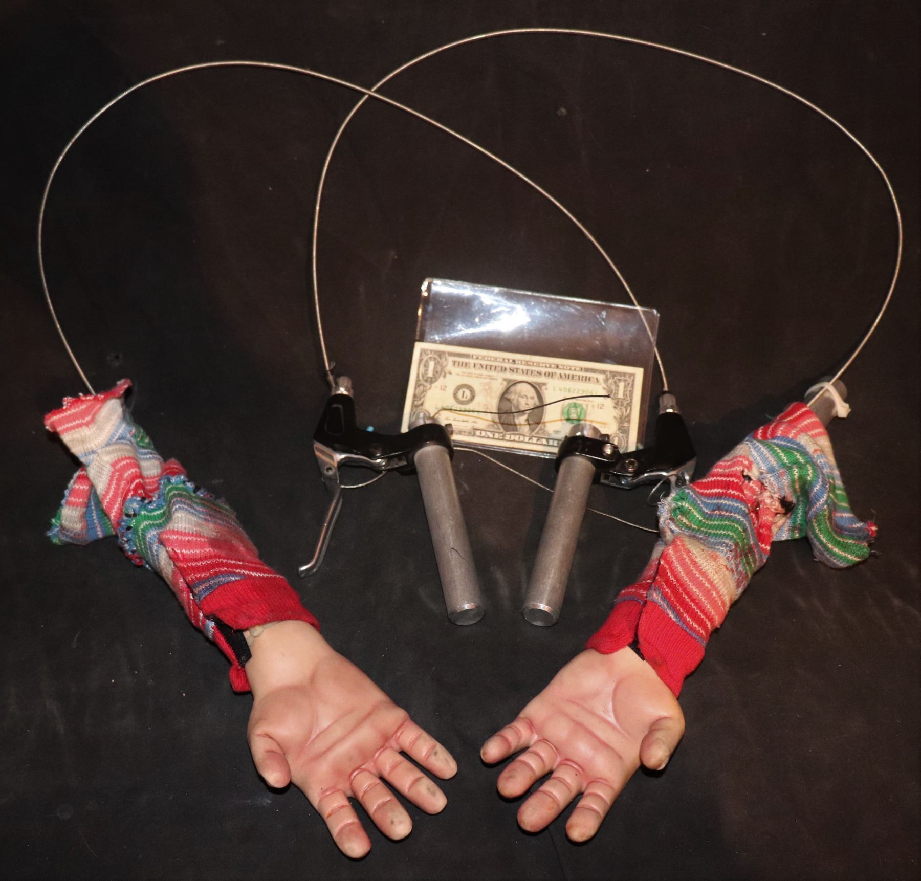 These have wrist action and armatured fingers to hold knives, axe, etc in insert shots. Thecables with hand triggers remain intact.