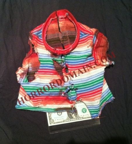 This is the Screen Used, and Matched bloody hero Chucky sweater off the chopped up chucky puppet in the end of SEED OF CHUCKY when Glen kills Chucky. It is saturated with Chucky's blood how cool is that!
