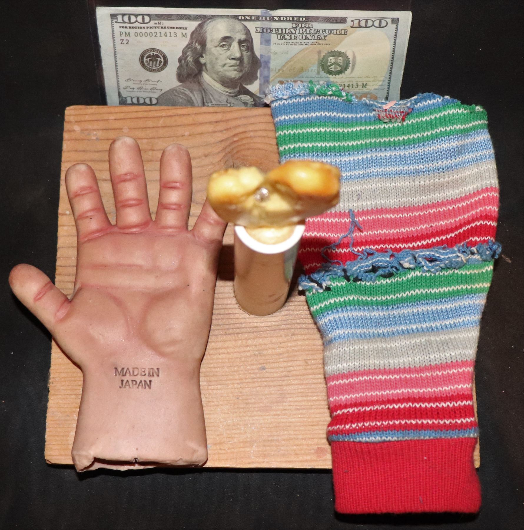 Every left hand has the words sculpted in, but this is the SCREEN MATCHED one they painted the MADE IN JAPAN for use in the interview scene! Arguably the coolest left hand in film history and the only CHUCKY hand that can be SCREEN MATCHED!